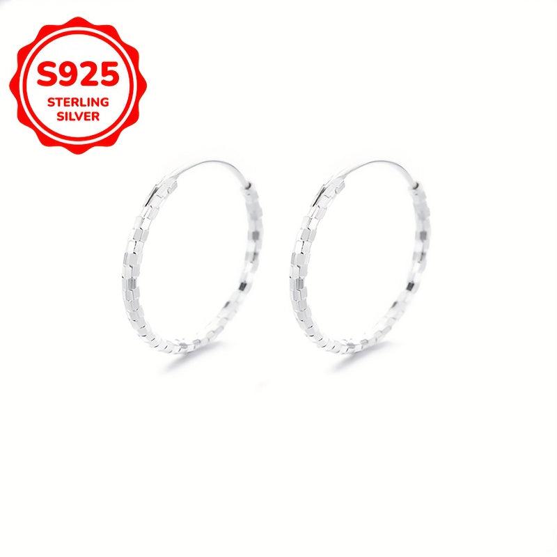 Elegant and finely crafted 925 silver engraved ring earrings suitable for women and girls, with a polished finish. Each earring weighs around 3g.