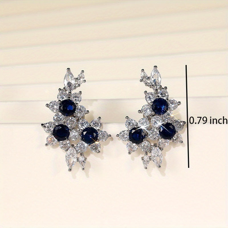 These flower shaped stud earrings feature stunning sapphire inlays, perfect for adding a touch of elegance to any outfit. Ideal for parties, weddings, and banquets.