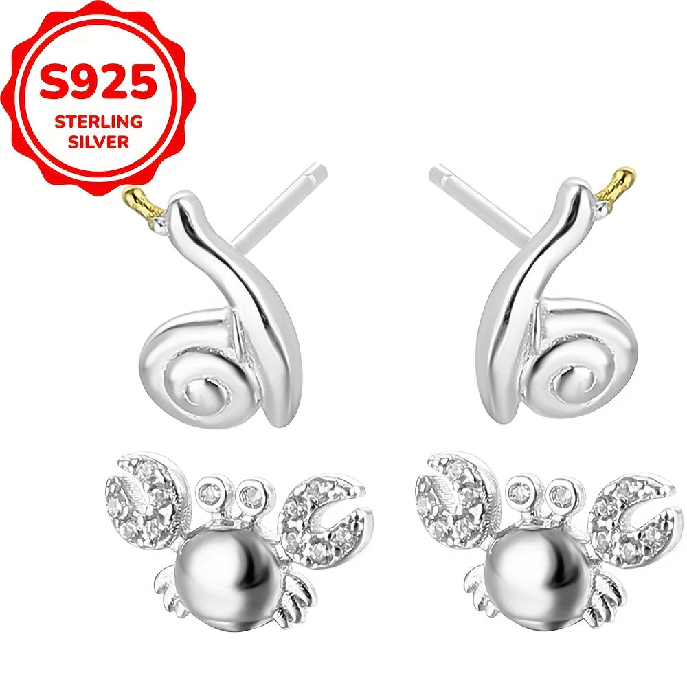 Add a quirky touch to your outfit with these adorable snail and crab stud earrings. Made of 925 sterling silver, perfect for daily wear.