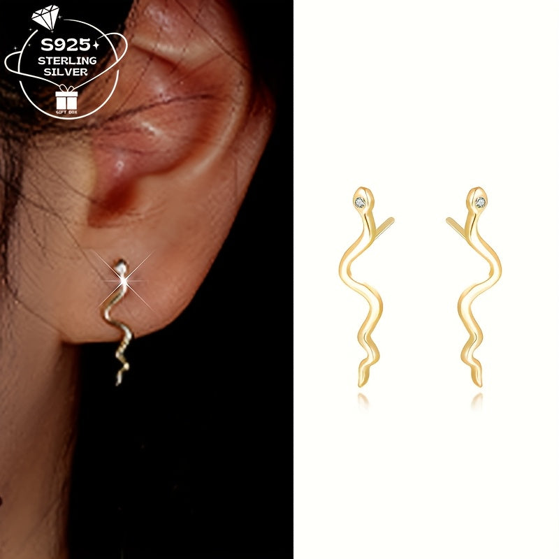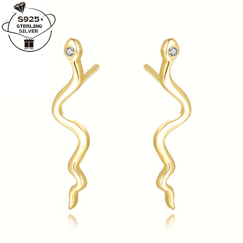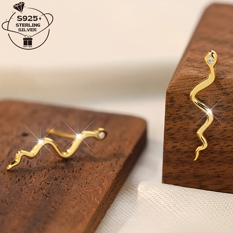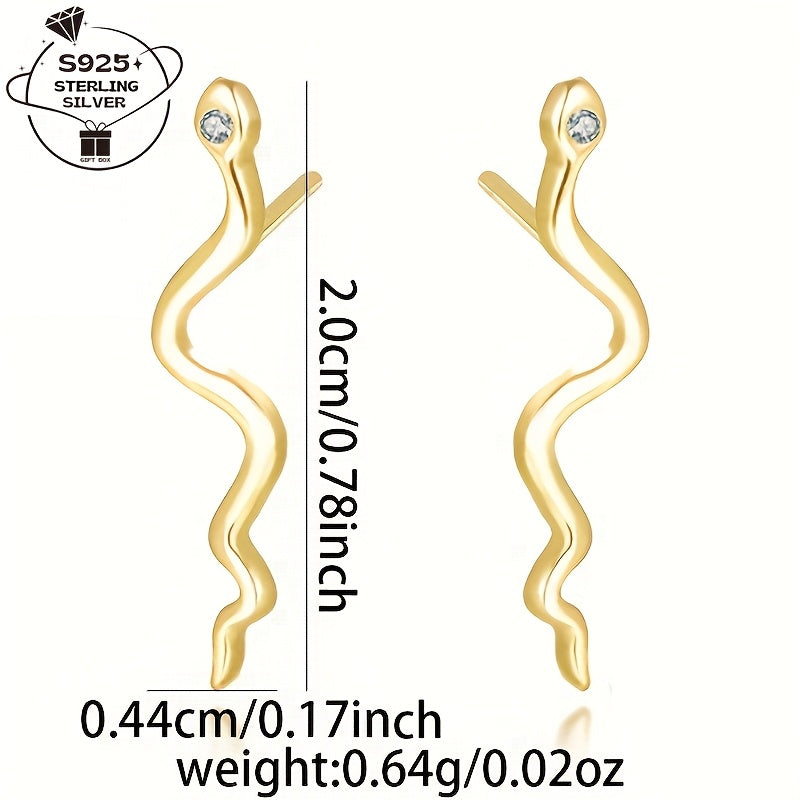 Stunning snake wave earrings crafted from 925 sterling silver with cubic zirconia. Perfect for daily wear and gift giving, suitable for parties.