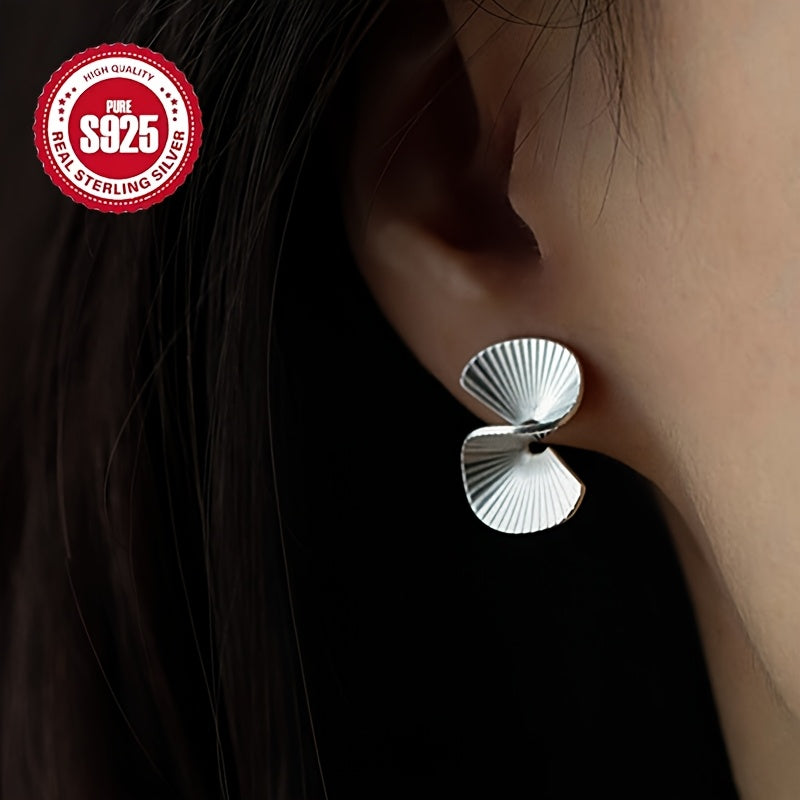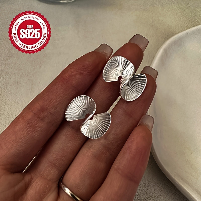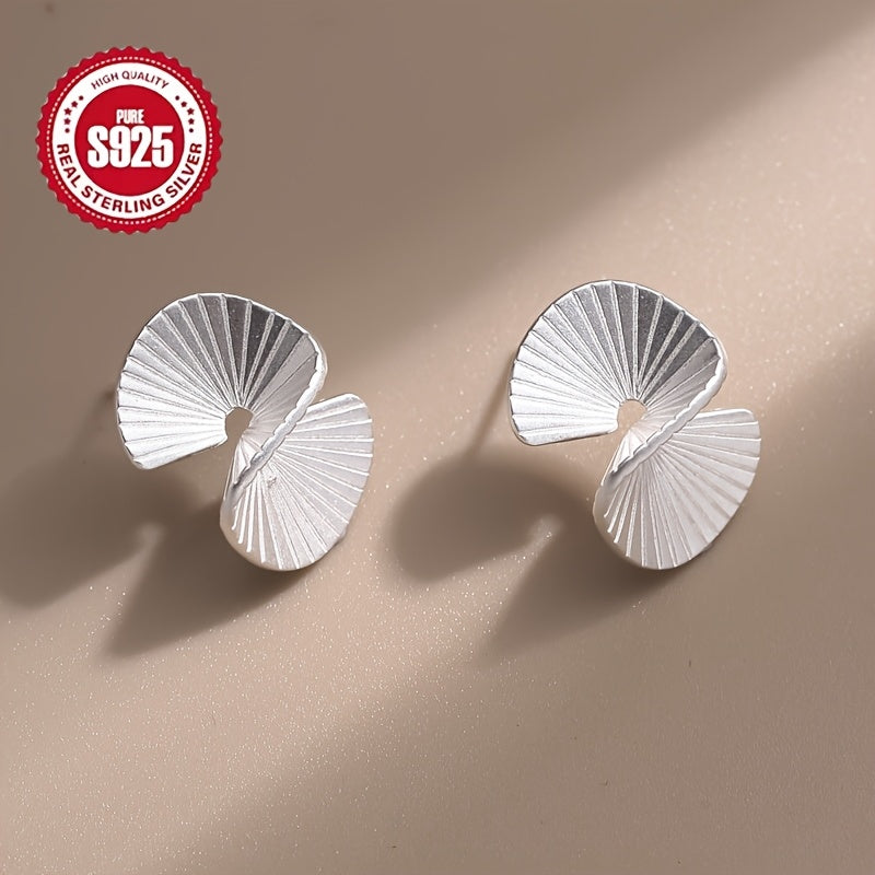 Elegant fan-shaped earrings made of 925 sterling silver with a spiral design. Features 18K golden plating and a matte textured finish. Perfect gift for Valentine's Day.
