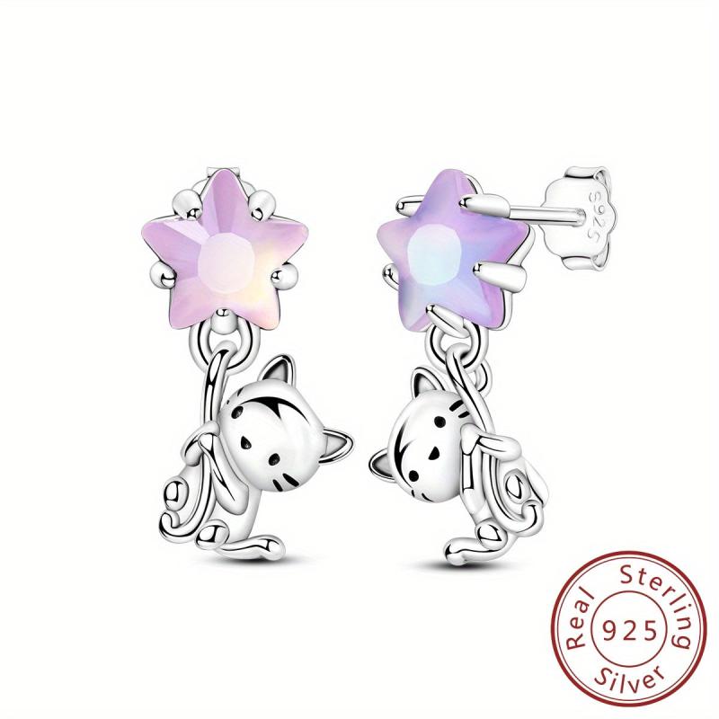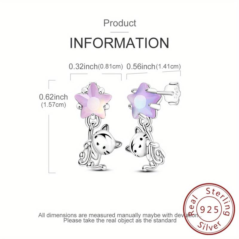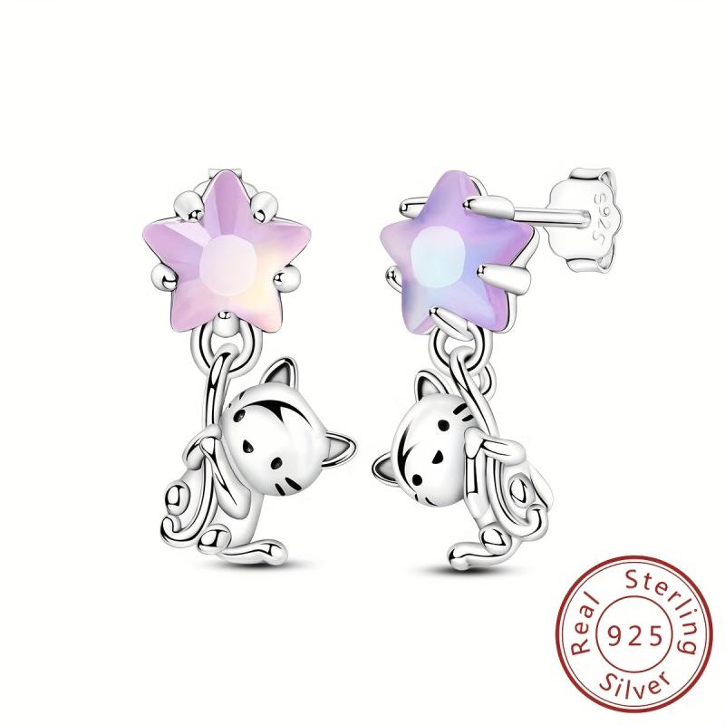 Adorable 925 silver earrings featuring star and cat design. Perfect for cat lovers and those who appreciate cute jewelry.