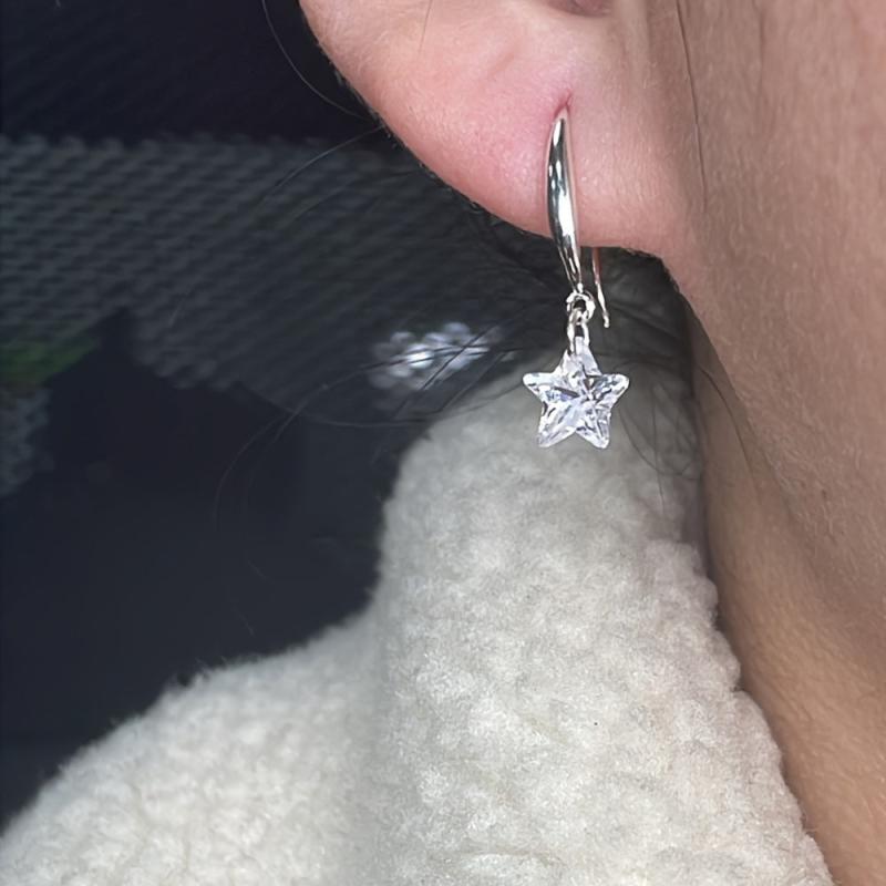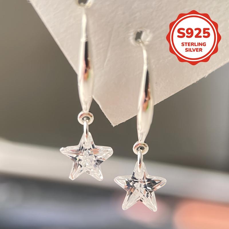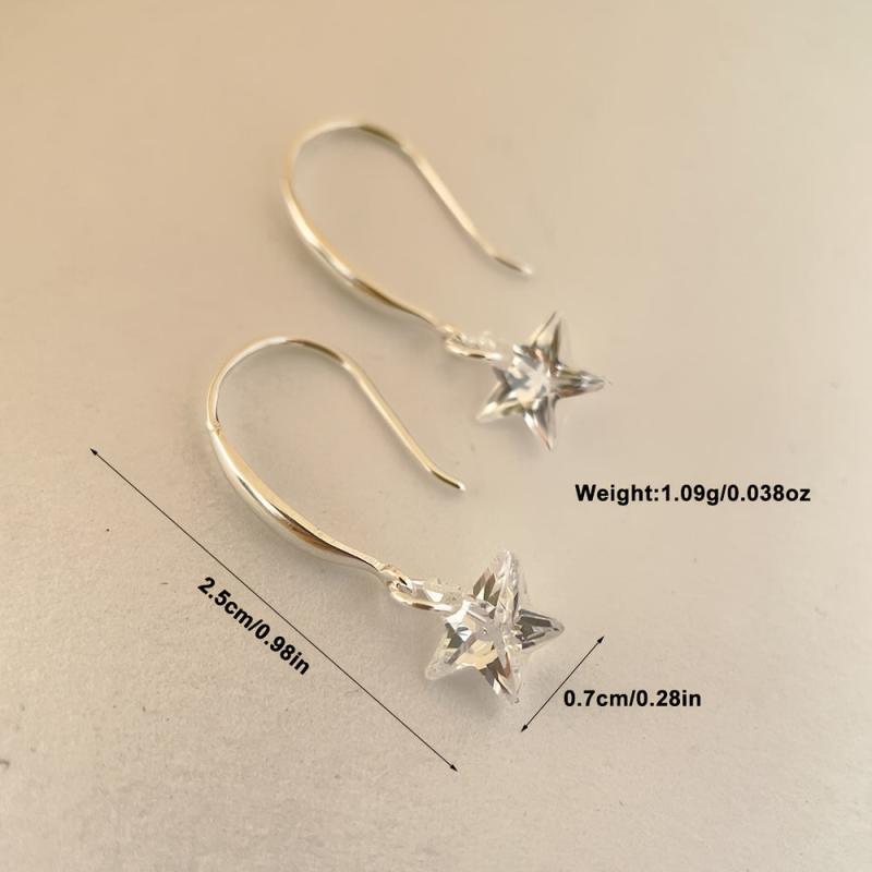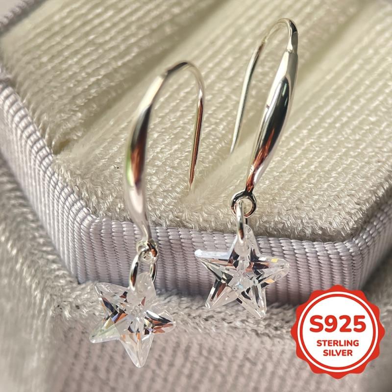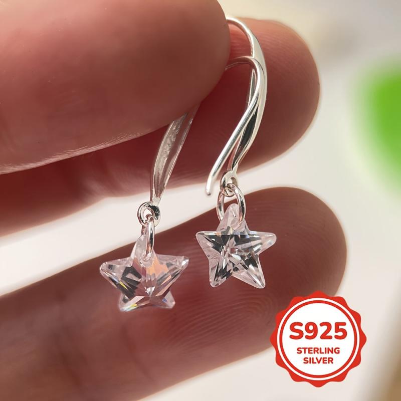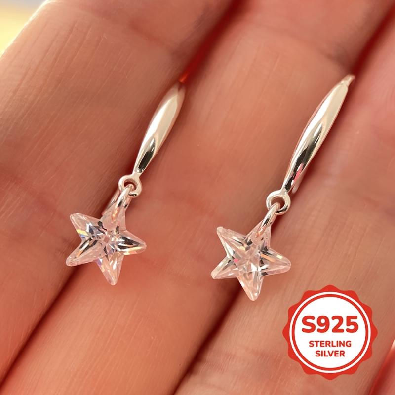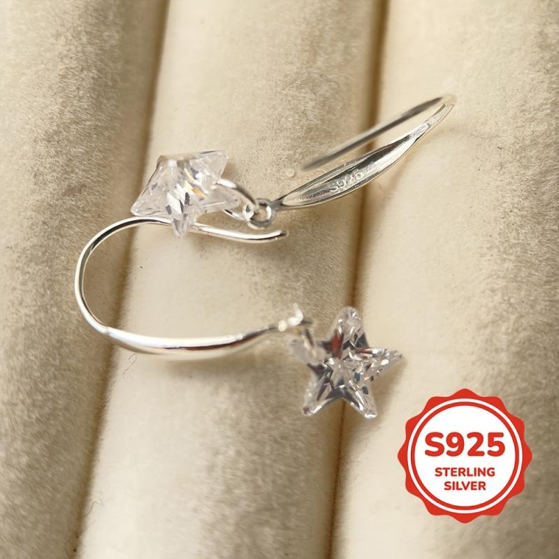 925 sterling silver ear hooks adorned with artificial cubic zirconia stars, perfect for gifting.