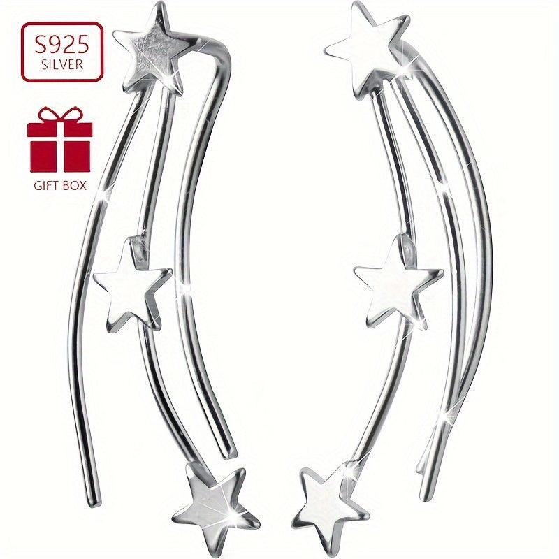 This pair of 925 silver star earrings features a total weight of about 1g. They are designed with five-pointed stars, making them a lovely gift for girlfriends and friends.