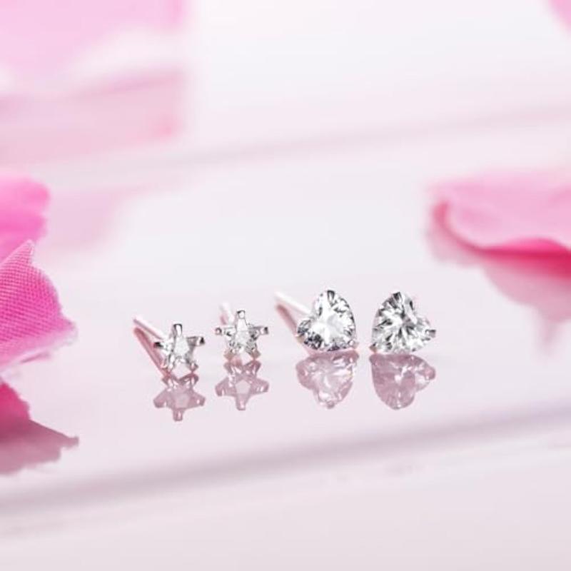 Add a touch of sparkle to your look with this combo set of stud earrings featuring star and heart designs. Made from 925 sterling silver with rhodium plating, these earrings are adorned with cubic zirconia stones for added shine. Each earring is hallmarked for authenticity.