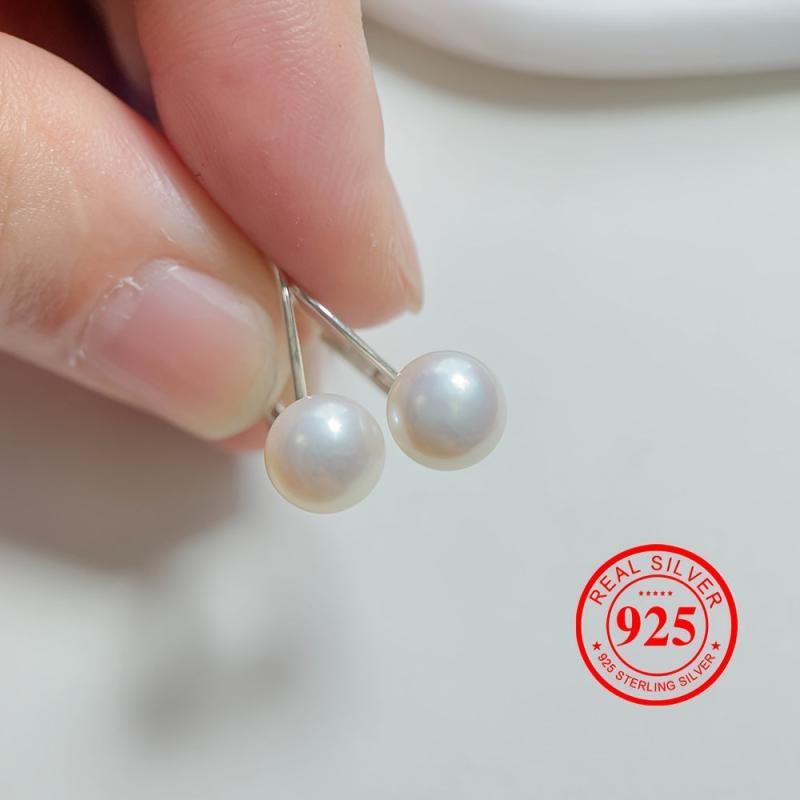 Elegant 925 pure silver stud earrings featuring 8mm natural freshwater pearls. Perfect for Christmas, weddings, brides, bridesmaids, and as a gift for mothers and friends.