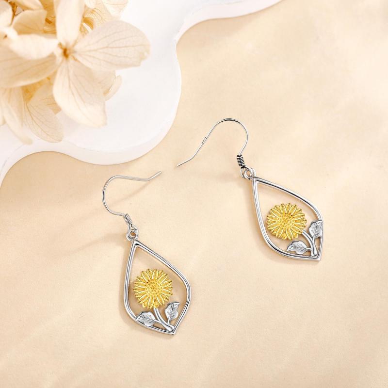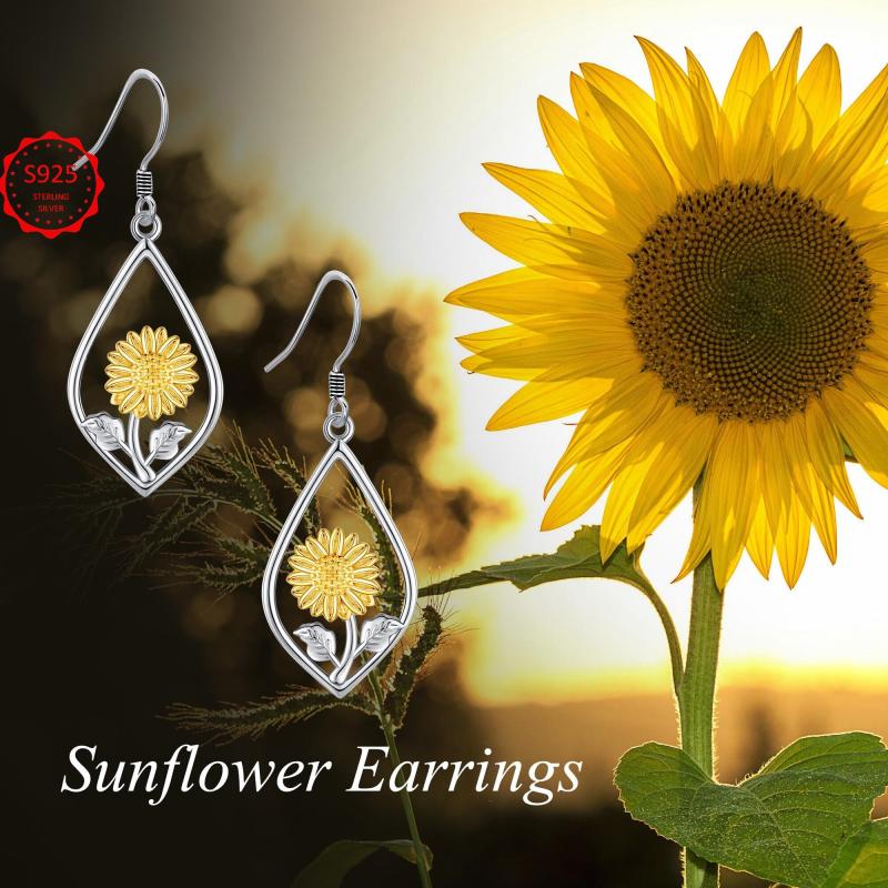 Add a touch of sunshine to your look with these charming sunflower dangle earrings. Made of 925 sterling silver, they are perfect for any occasion.