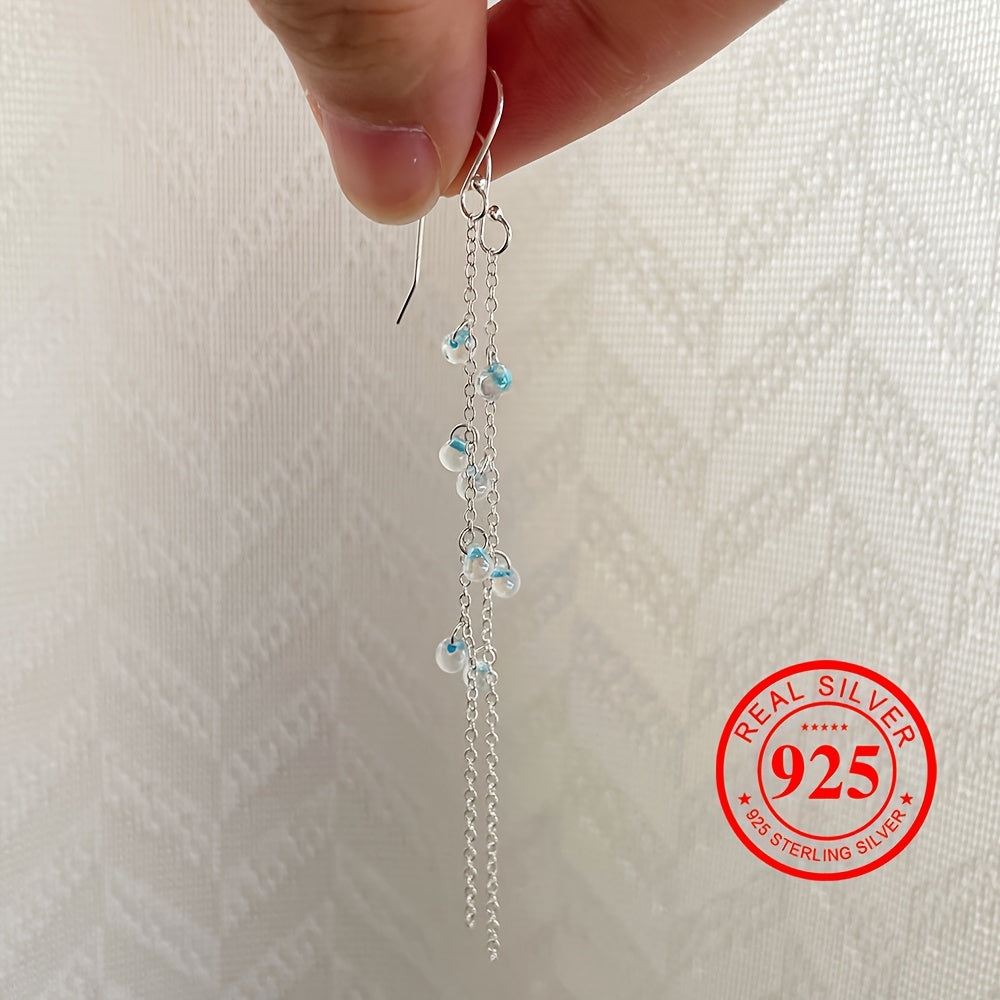 Elegant 925 sterling silver earrings with resin teardrop dangles in a nautical design. Perfect for weddings, Christmas, and anniversaries.