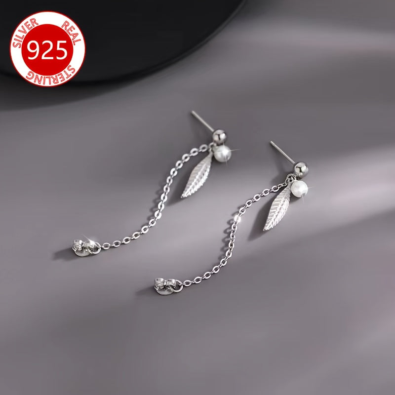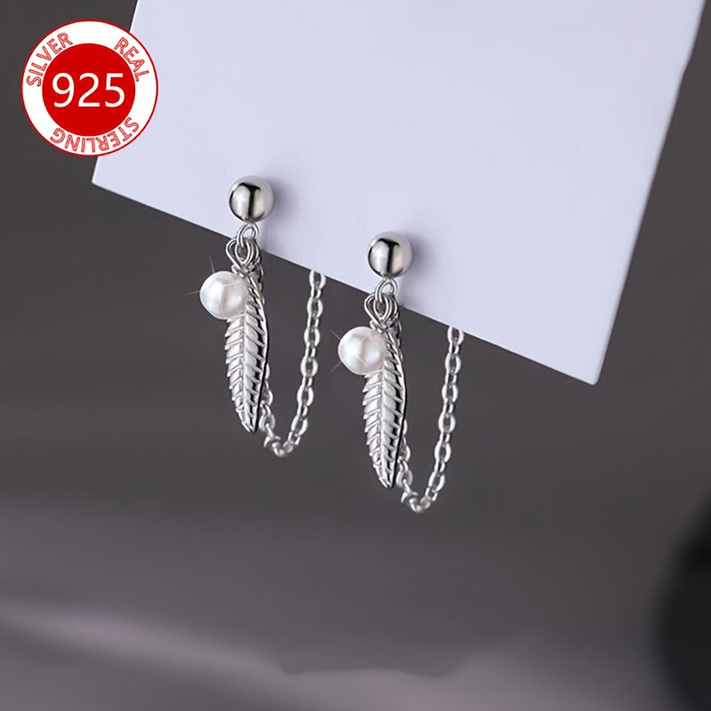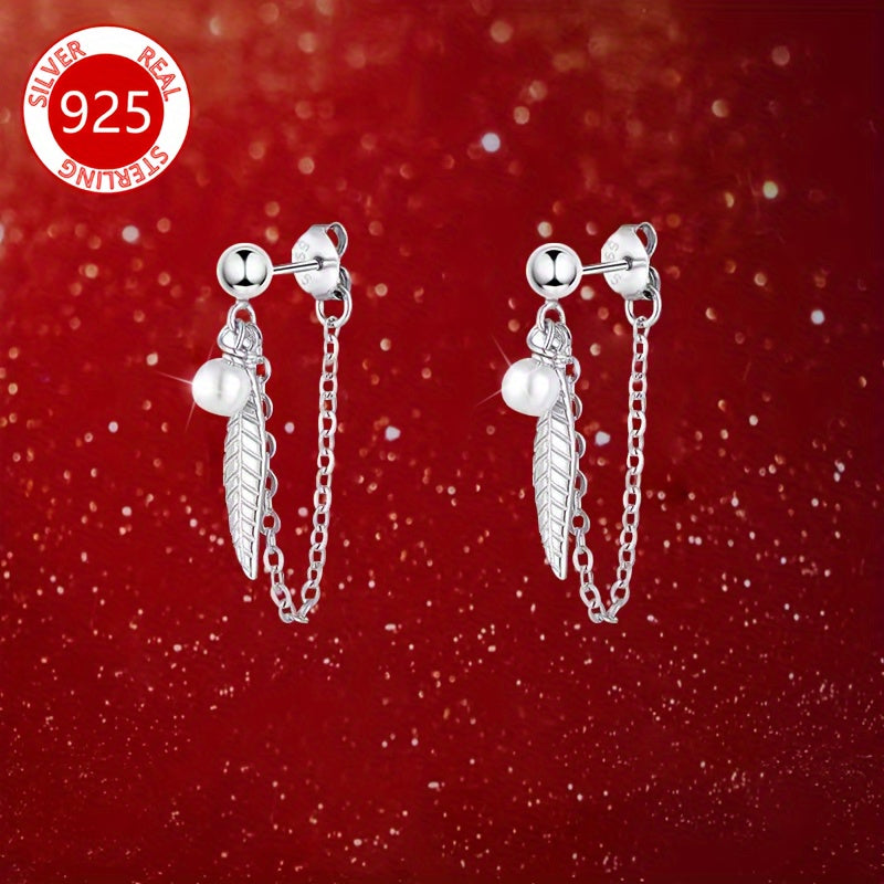 Elegant and hypoallergenic earrings feature tassel feather design with freshwater pearl on vintage inspired chain. Perfect for everyday wear and gifting on Christmas.
