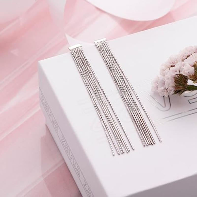 Elegant and stylish tassel earrings made of 925 sterling silver with rhodium plating. Features a 925 hallmark for authenticity.