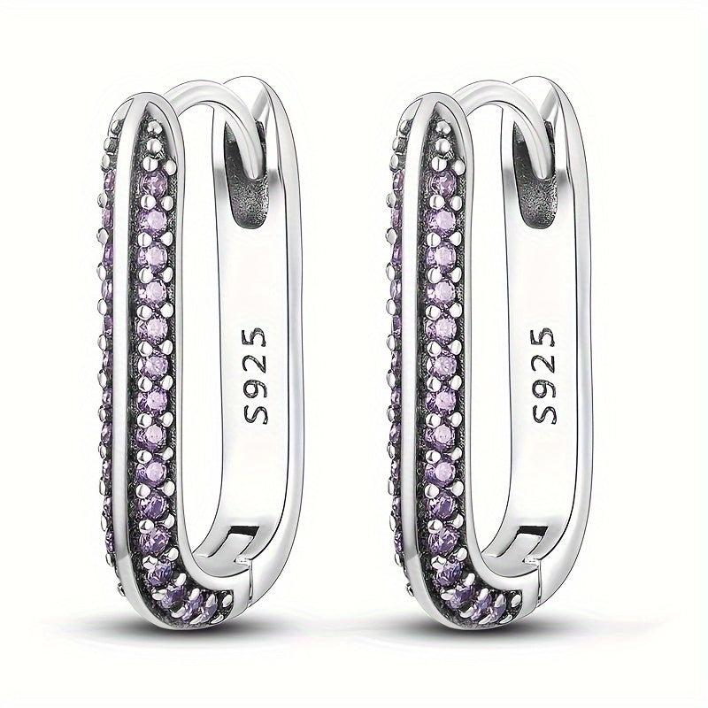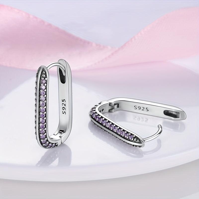 These 925 sterling silver U-shaped earrings feature purple rhinestones, making them perfect for women's daily wear or special occasions. The vintage style adds a touch of elegance to any outfit.