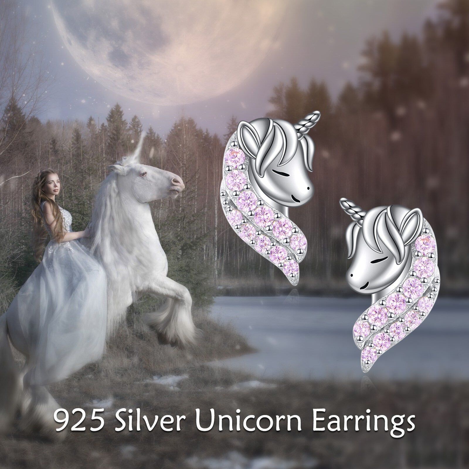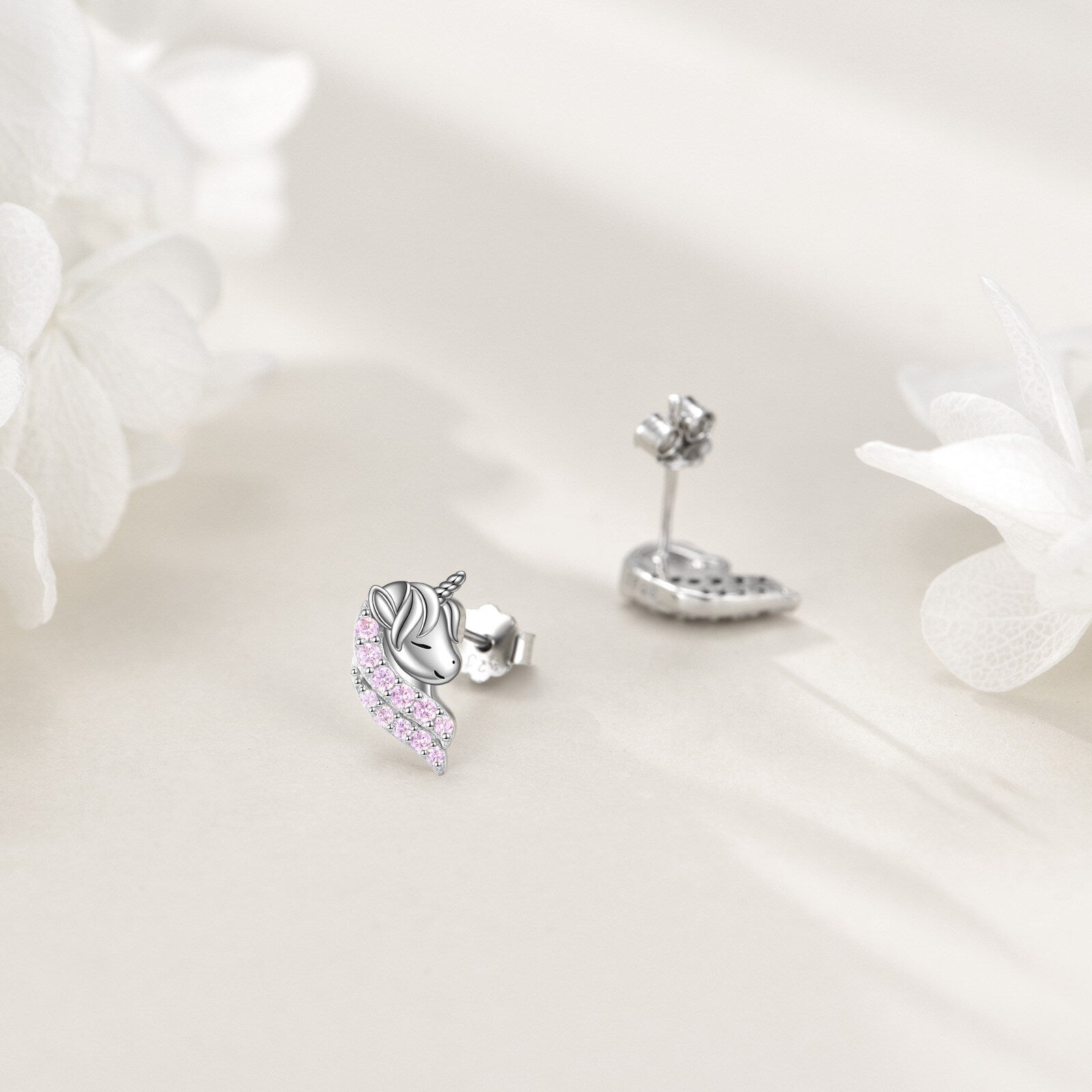 These adorable unicorn earrings are made of 925 silver, perfect for those with sensitive skin. A cute and magical addition to your jewelry collection.