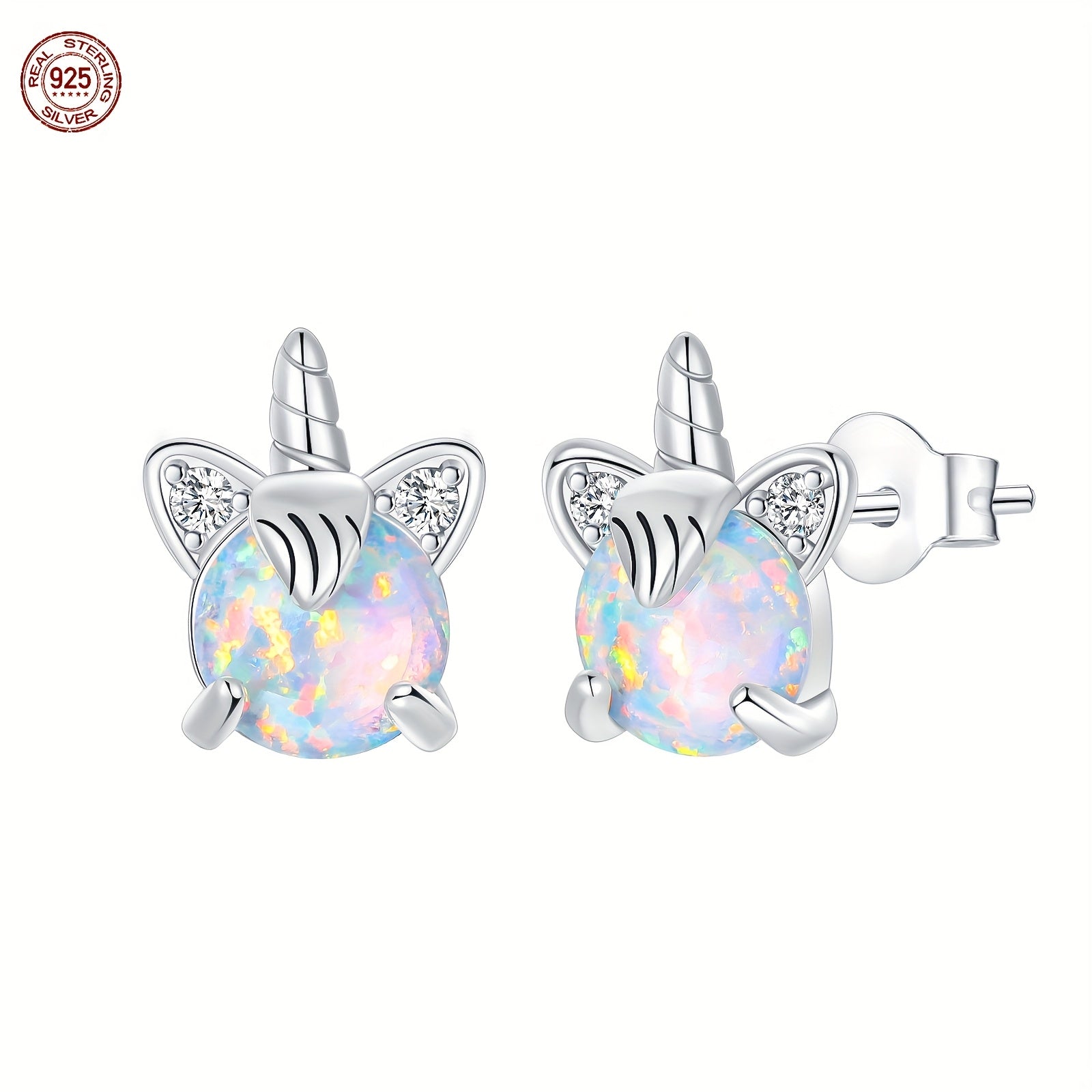 Add a touch of magic to your style with these unicorn stud earrings made of 925 sterling silver and featuring a sexy unicorn design with synthetic opal plating.