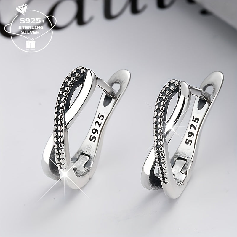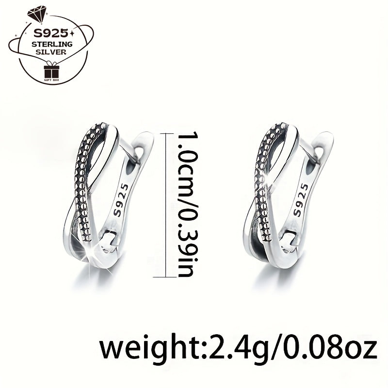 Adorn your ears with these elegant 925 silver earrings featuring a vintage 8-shaped twist design. Perfect accessory for a holiday gift. Total weight approximately 2.4g.