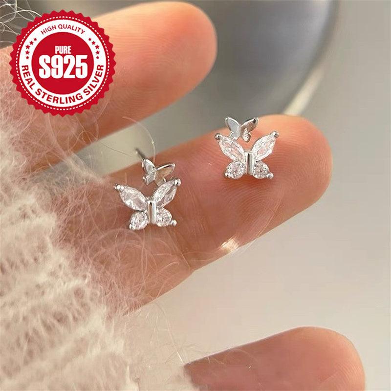 Adorn your ears with these delicate silvery butterfly earrings. The high-end ins style design is perfect for small crowds. Each earring is lightweight at 0.7g.
