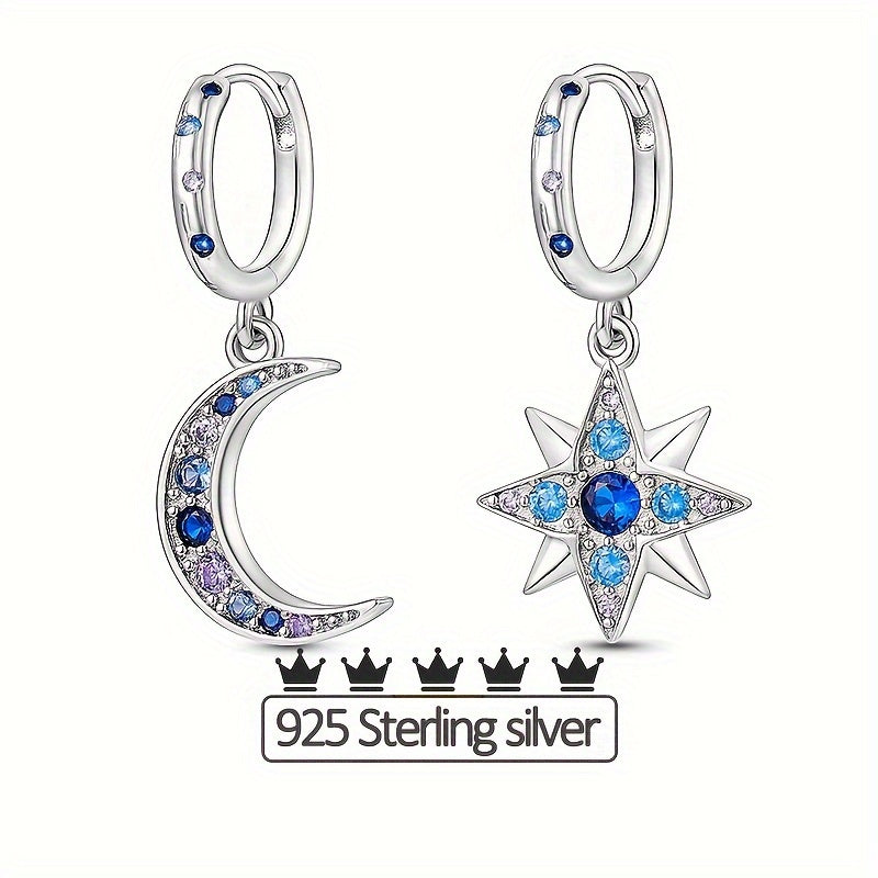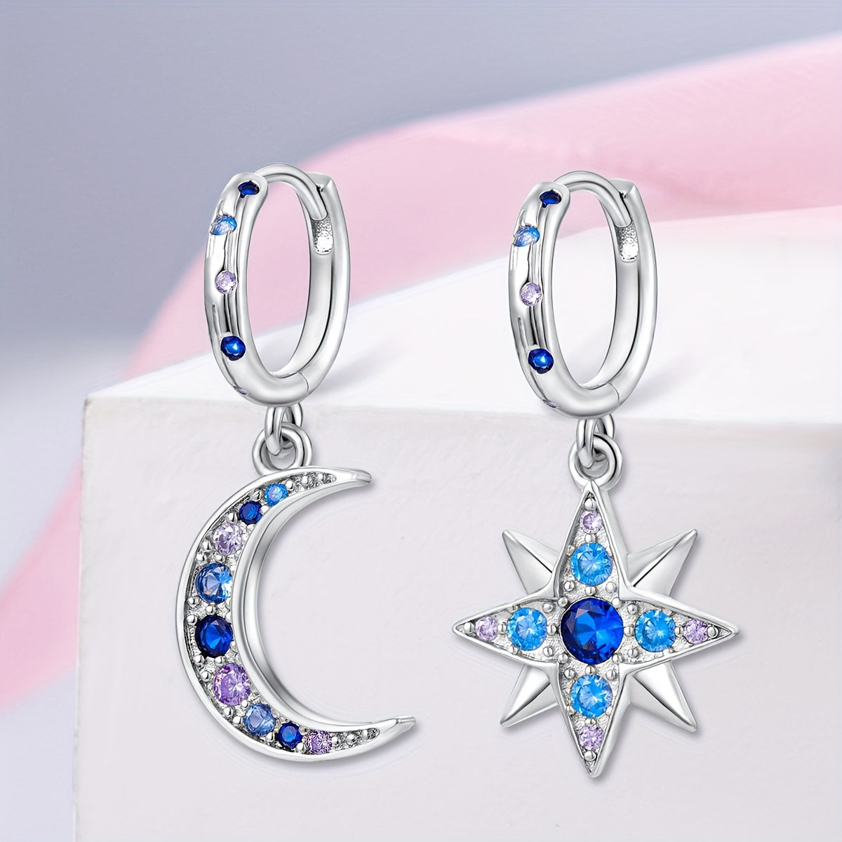 Elegant and hypoallergenic 925 silver earrings featuring a star and moon design with zirconia stones. Perfect gift for women.