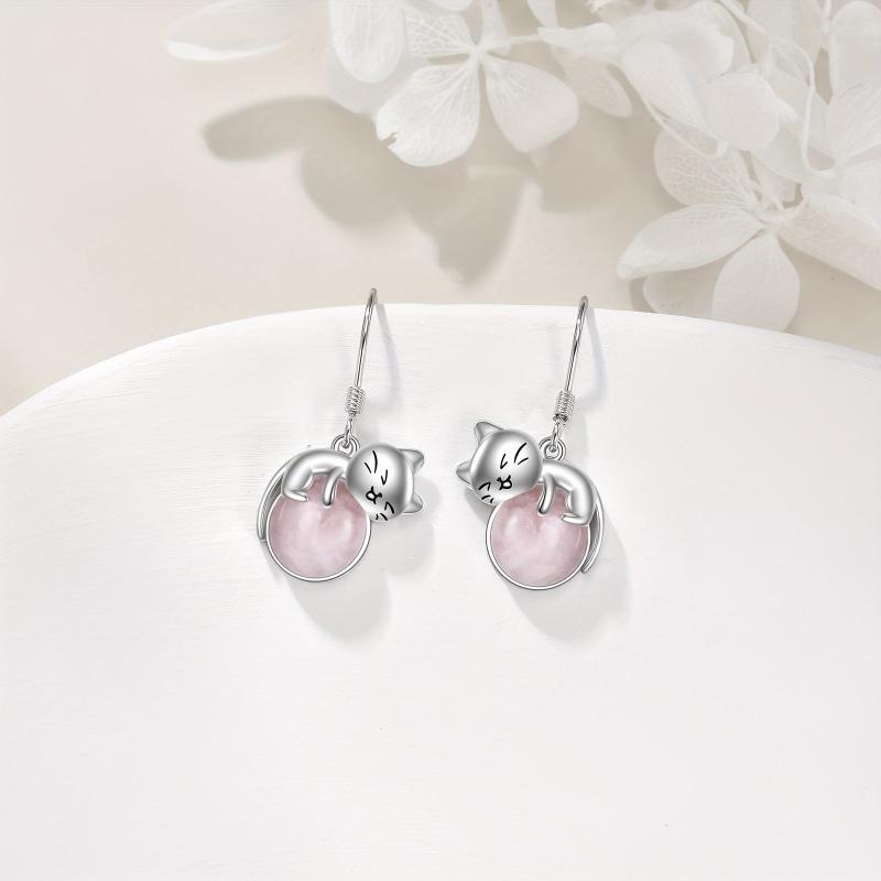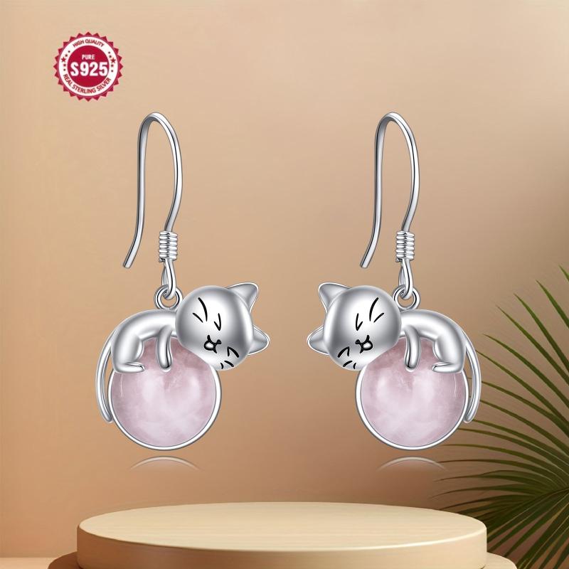 Adorable cat-shaped earrings made of 925 pure silver, perfect for cat lovers. This lovely jewelry piece is a great gift for women, wives, or mothers.