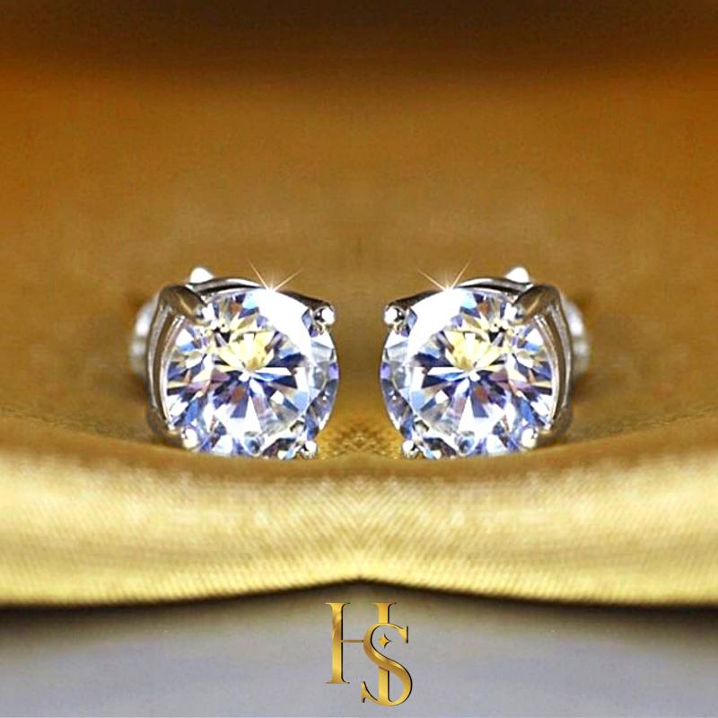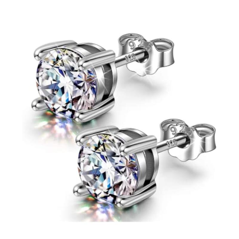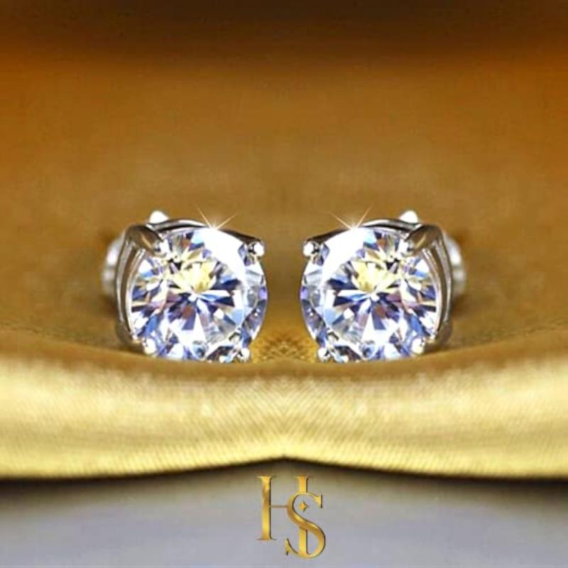 These stunning solitaire earrings are made of 92.5 sterling silver and feature a brilliant diamond-like sparkle. Perfect for adding a touch of elegance to any outfit.