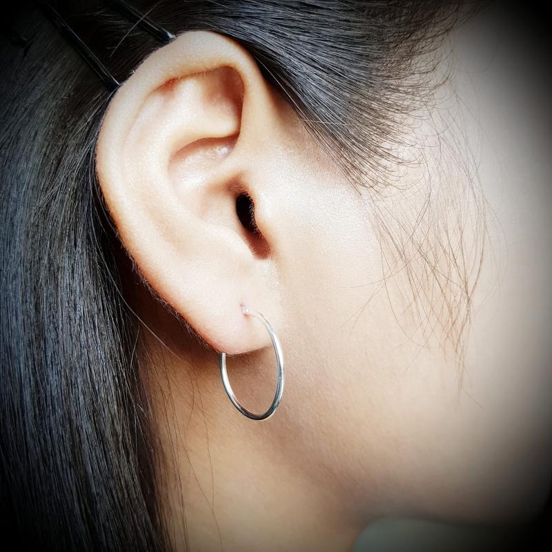 Elegant and stylish 925 sterling silver hoop earrings with a secure French lock design. These 25mm hoops are perfect for everyday wear or special occasions.