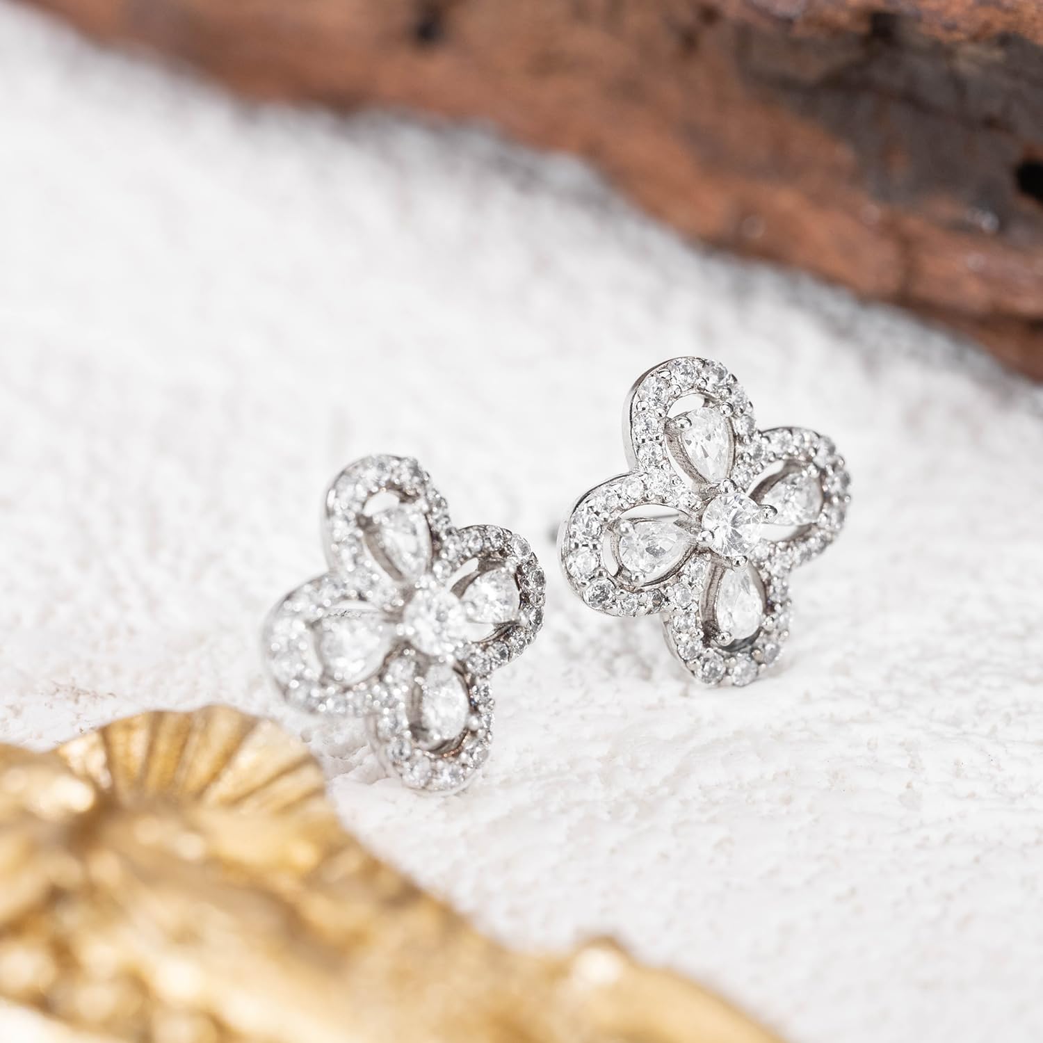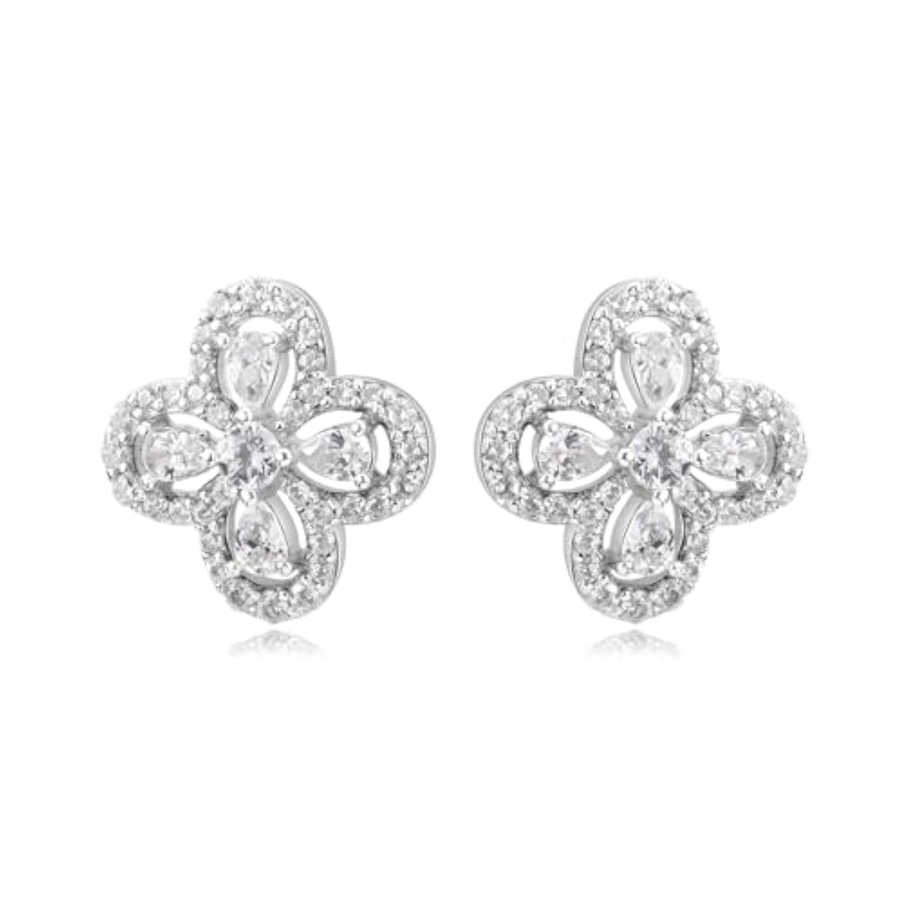 Beautiful clover halo whispers earrings made of 92.5 sterling silver. Perfect birthday gift for girls. Hallmarked for authenticity.