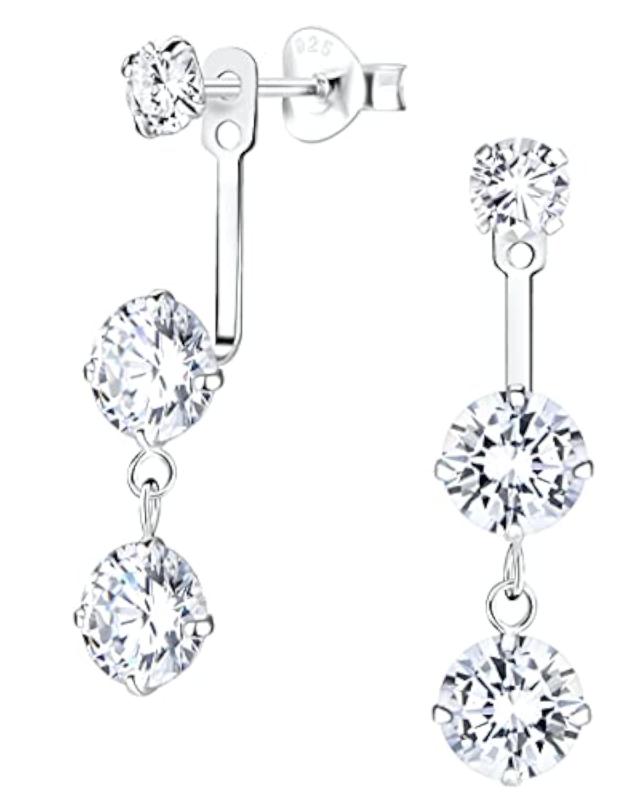 925 Sterling Front To Back Crystal Dangle Earrings