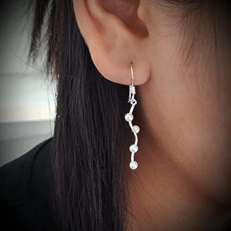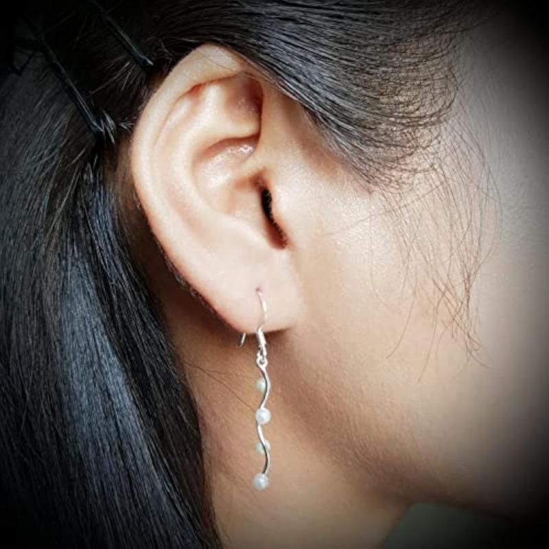 Elegant and versatile dangle earrings crafted from 925 sterling silver with a hanging vine design and lustrous pearls.