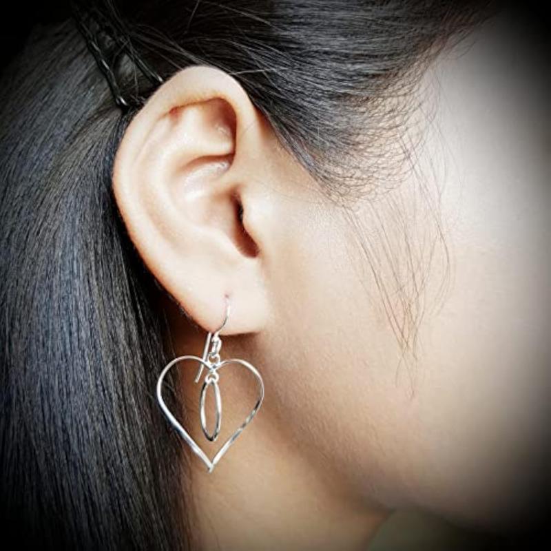 These elegant heart dangle earrings are made of 925 sterling silver, perfect for adding a touch of charm to any outfit.
