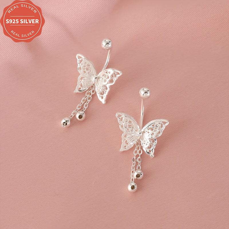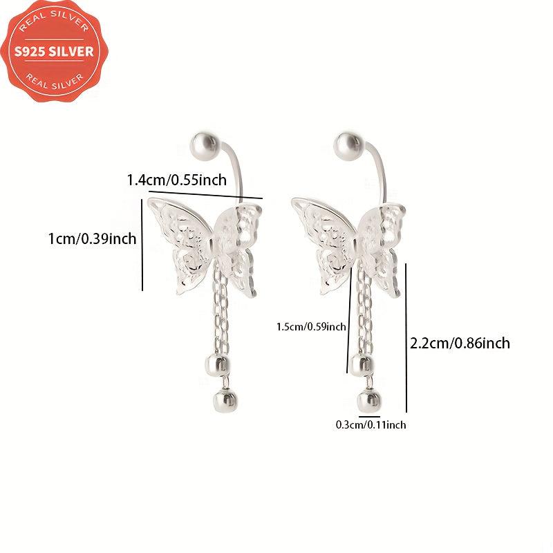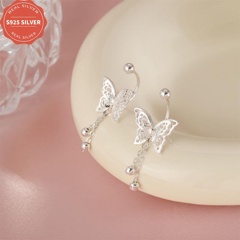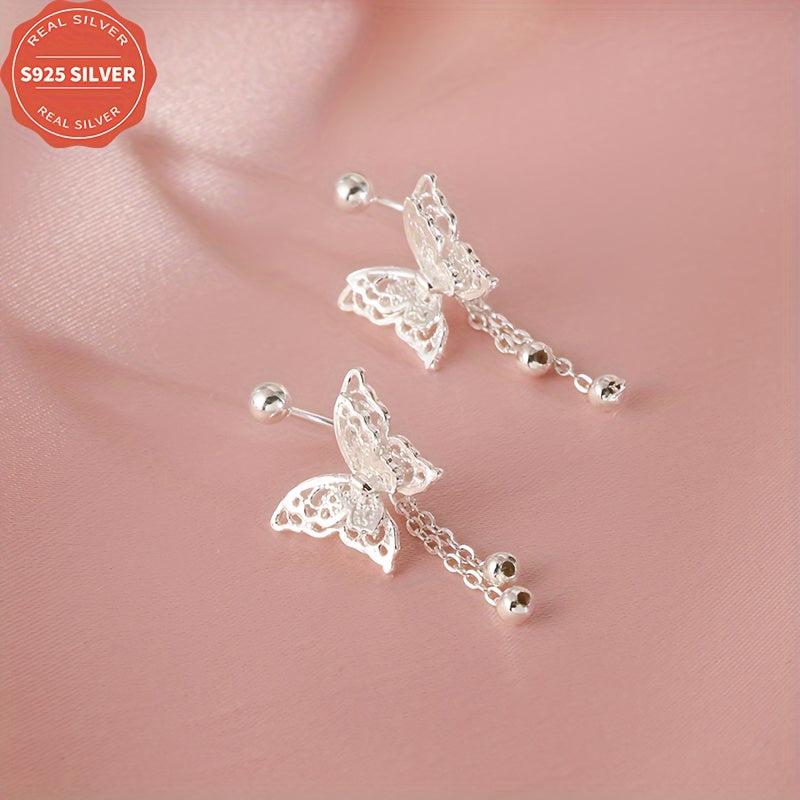 These dainty earrings feature a hollow butterfly design with tassels, made from 925 sterling silver for anti-oxidation. They come in a box, perfect for daily wear, gift-giving, Halloween, and all seasons.