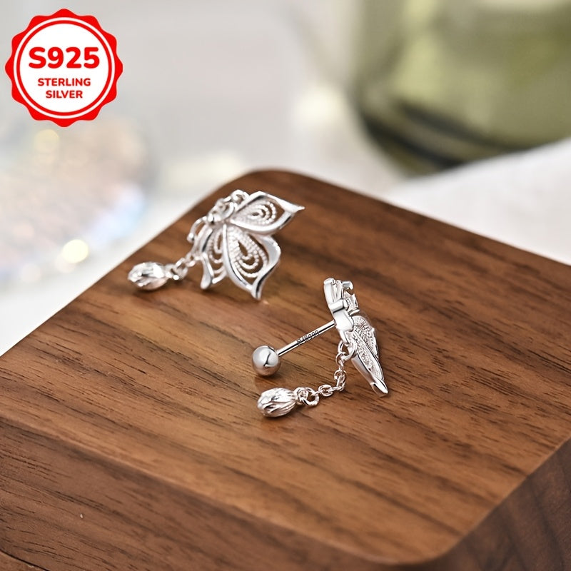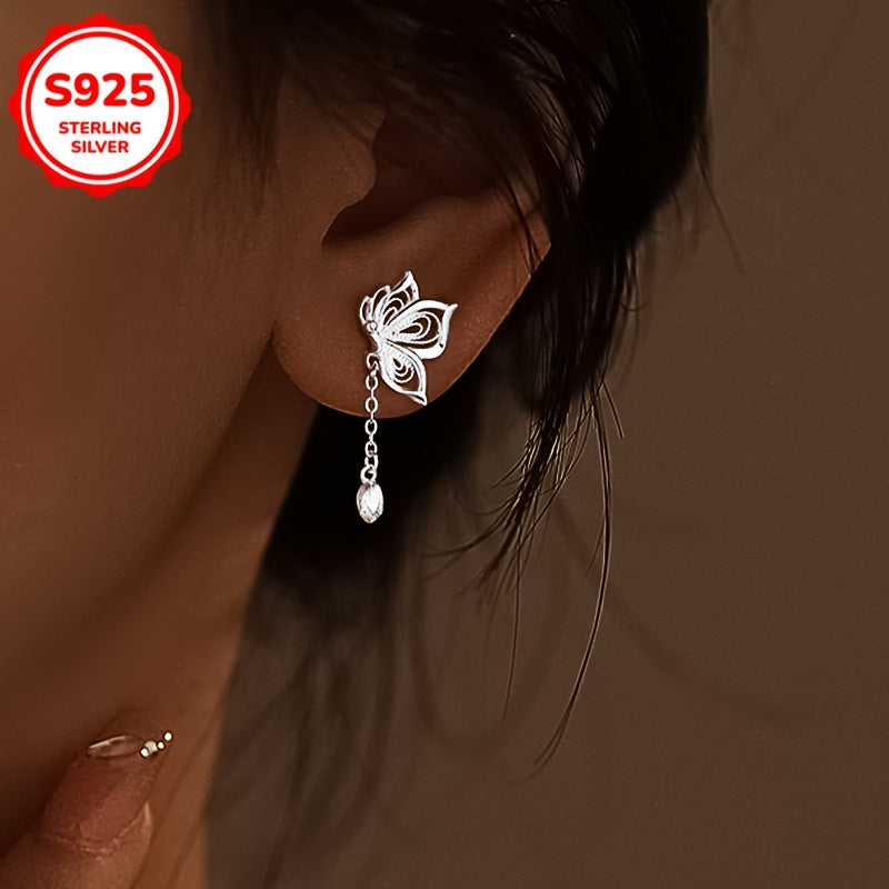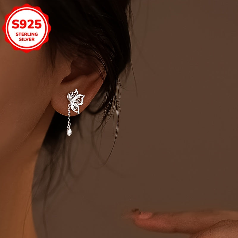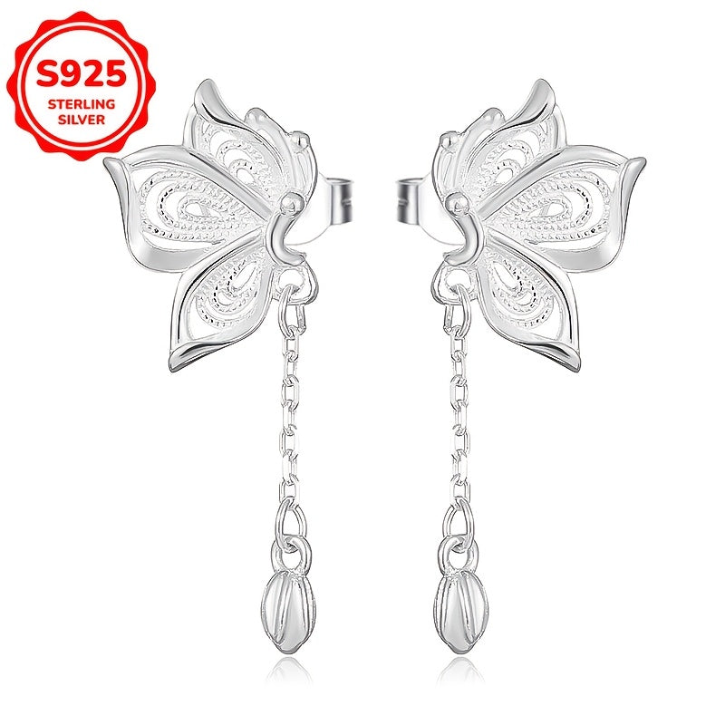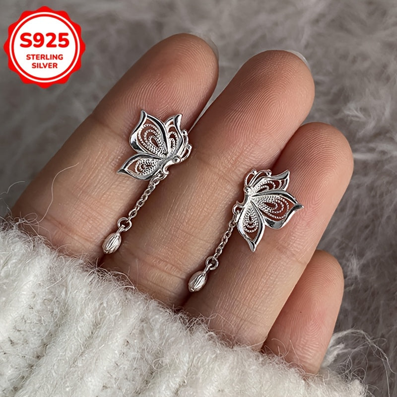 Adorn your ears with these stylish butterfly tassel earrings crafted from 925 sterling silver. Perfect for daily wear or as a thoughtful gift.