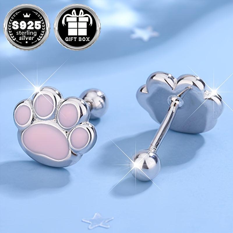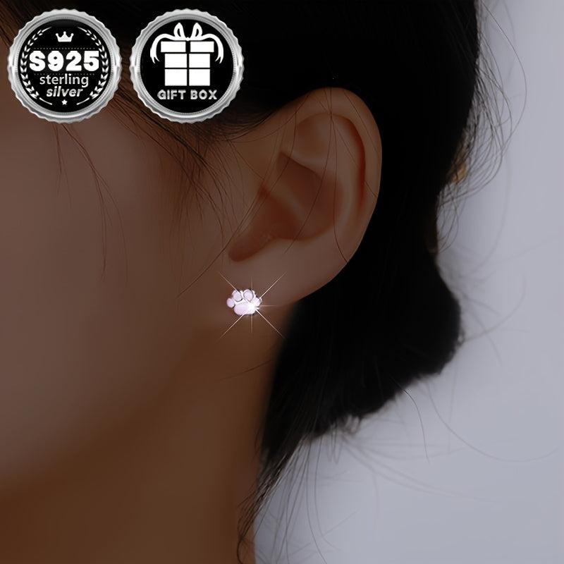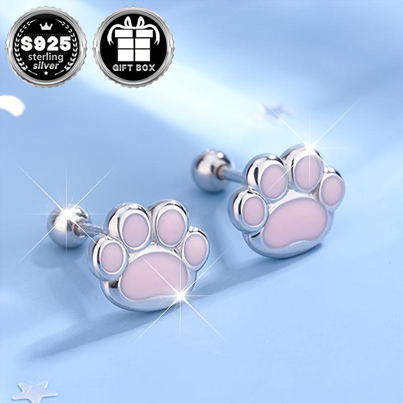 These earrings are made of high-quality 925 sterling silver with pink resin, perfect for cat lovers. They are hypoallergenic and stylish.