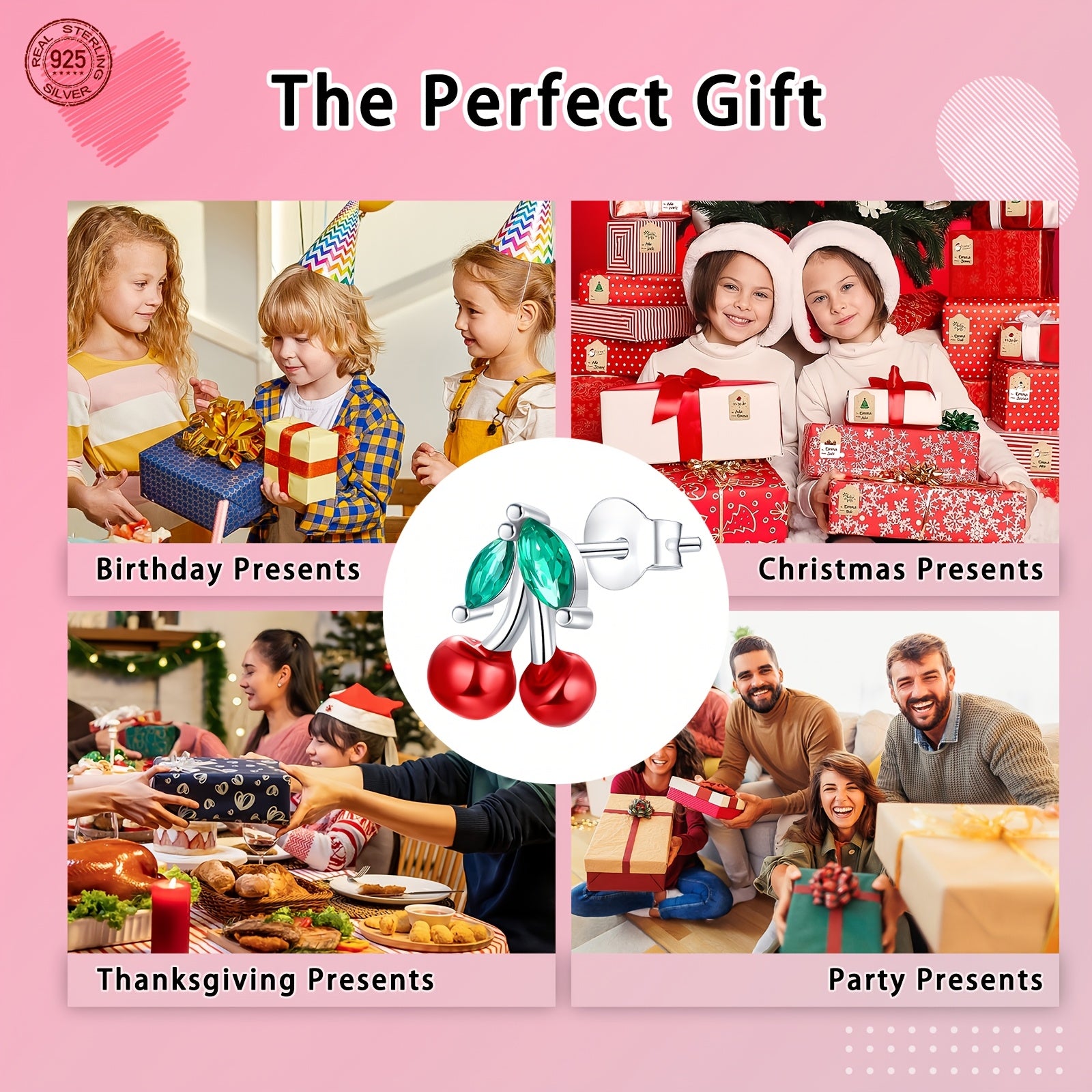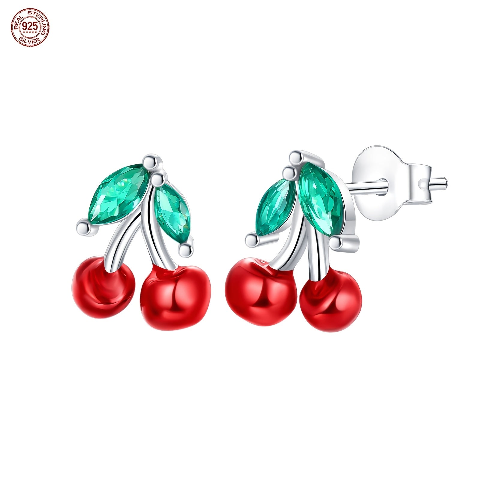 These exquisite cherry earrings are made of 925 sterling silver with synthetic zirconia. They are lightweight at only 4g and perfect for various occasions such as weddings, music events, and Mardi Gras.