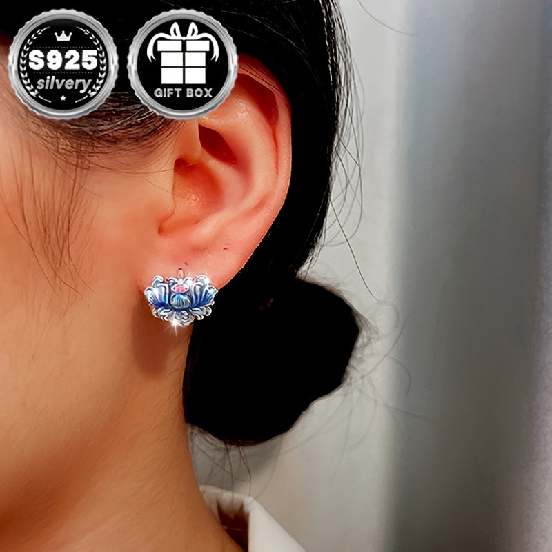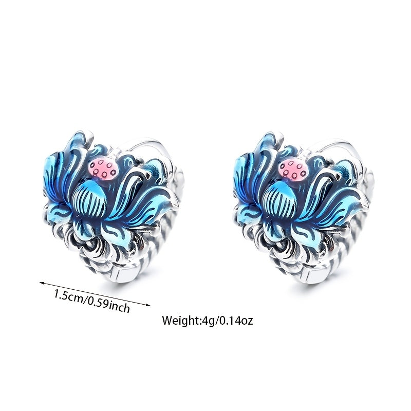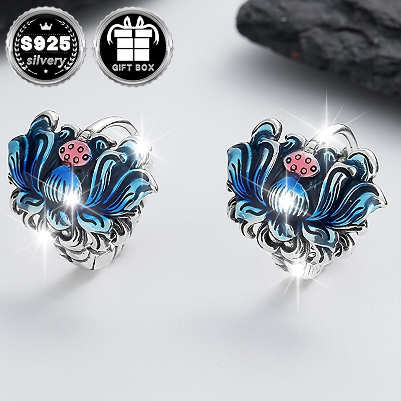Elegant circular earrings crafted from 925 sterling silver with a creative resin lotus flower design, adding a touch of ethnic style to your look.