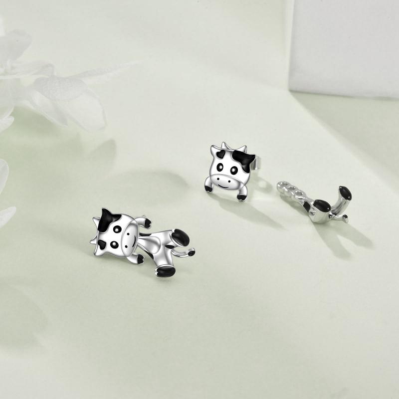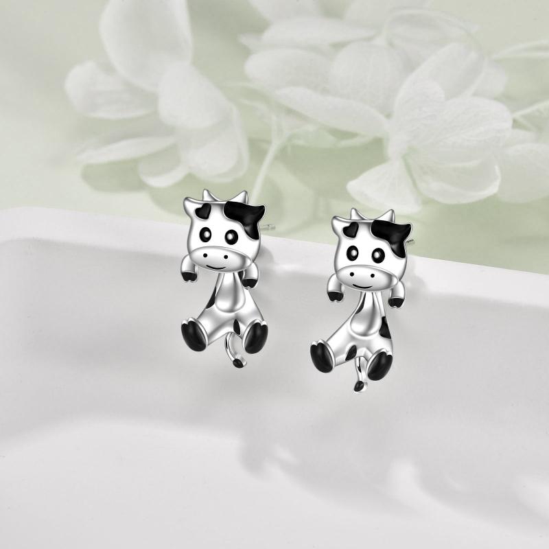 Adorable cow earrings made from high-quality 925 sterling silver, perfect for everyday wear or as a gift.