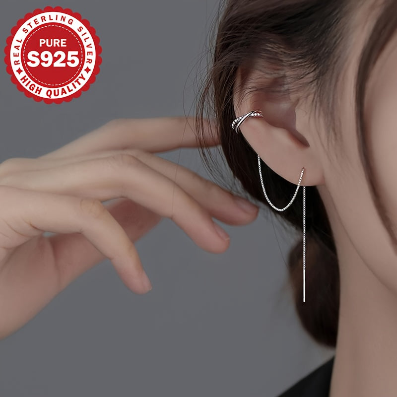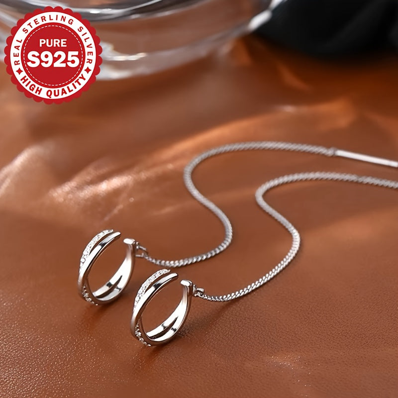 These tassel earrings are made of 925 sterling silver with synthetic zirconia stones, perfect for parties and gifting. Lightweight at 2.05g.