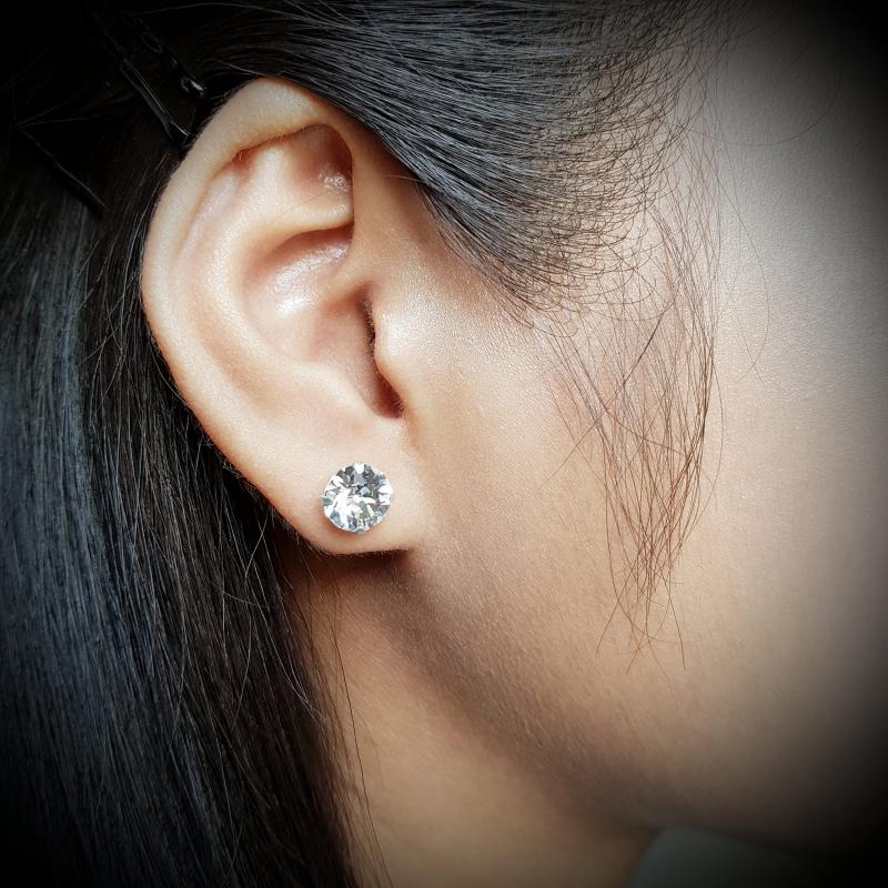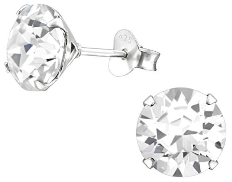 These elegant stud earrings are made of pure 925 sterling silver with round crystal accents. Perfect for adding a touch of sparkle to any outfit.