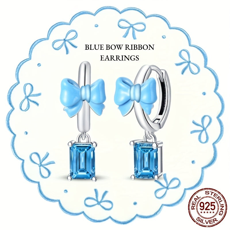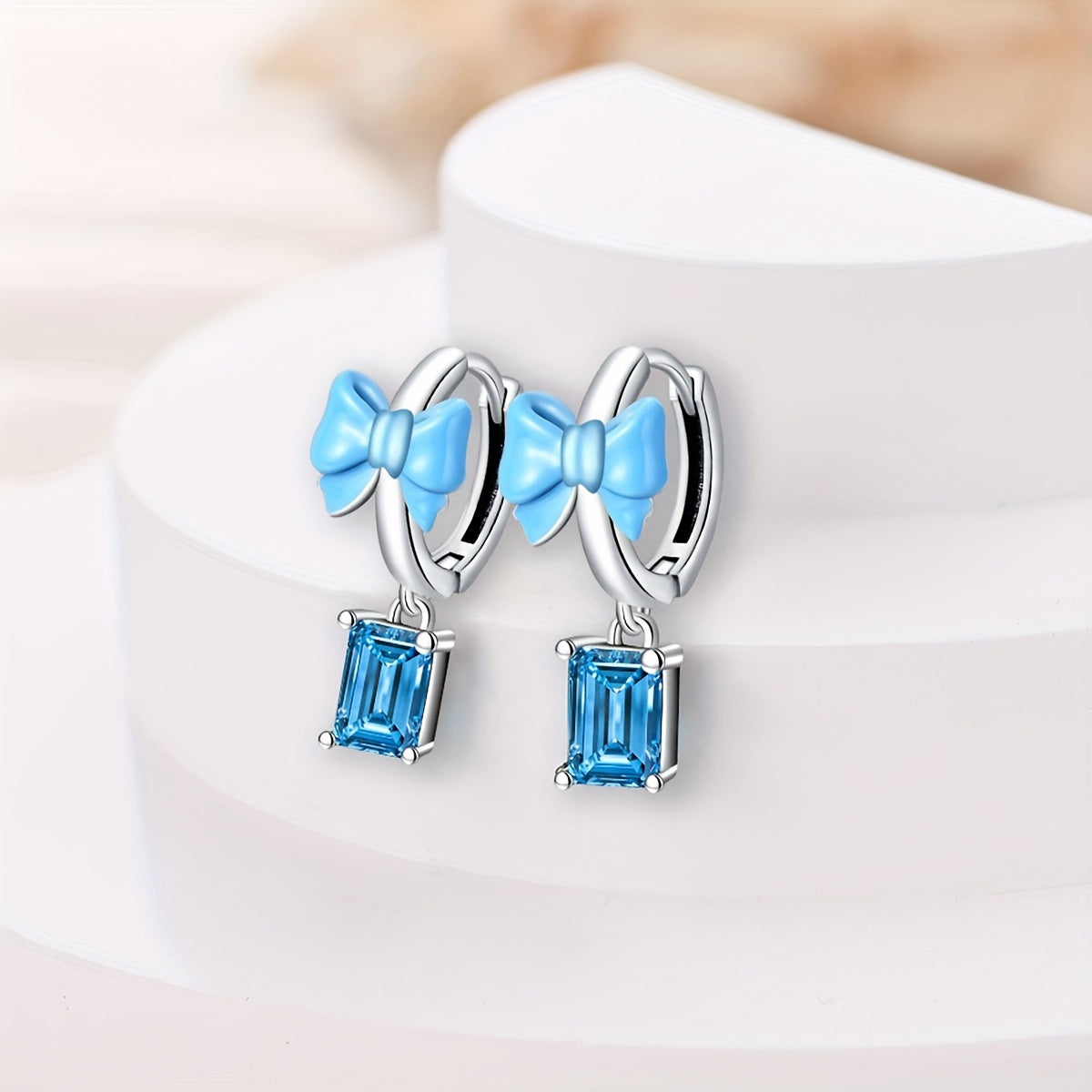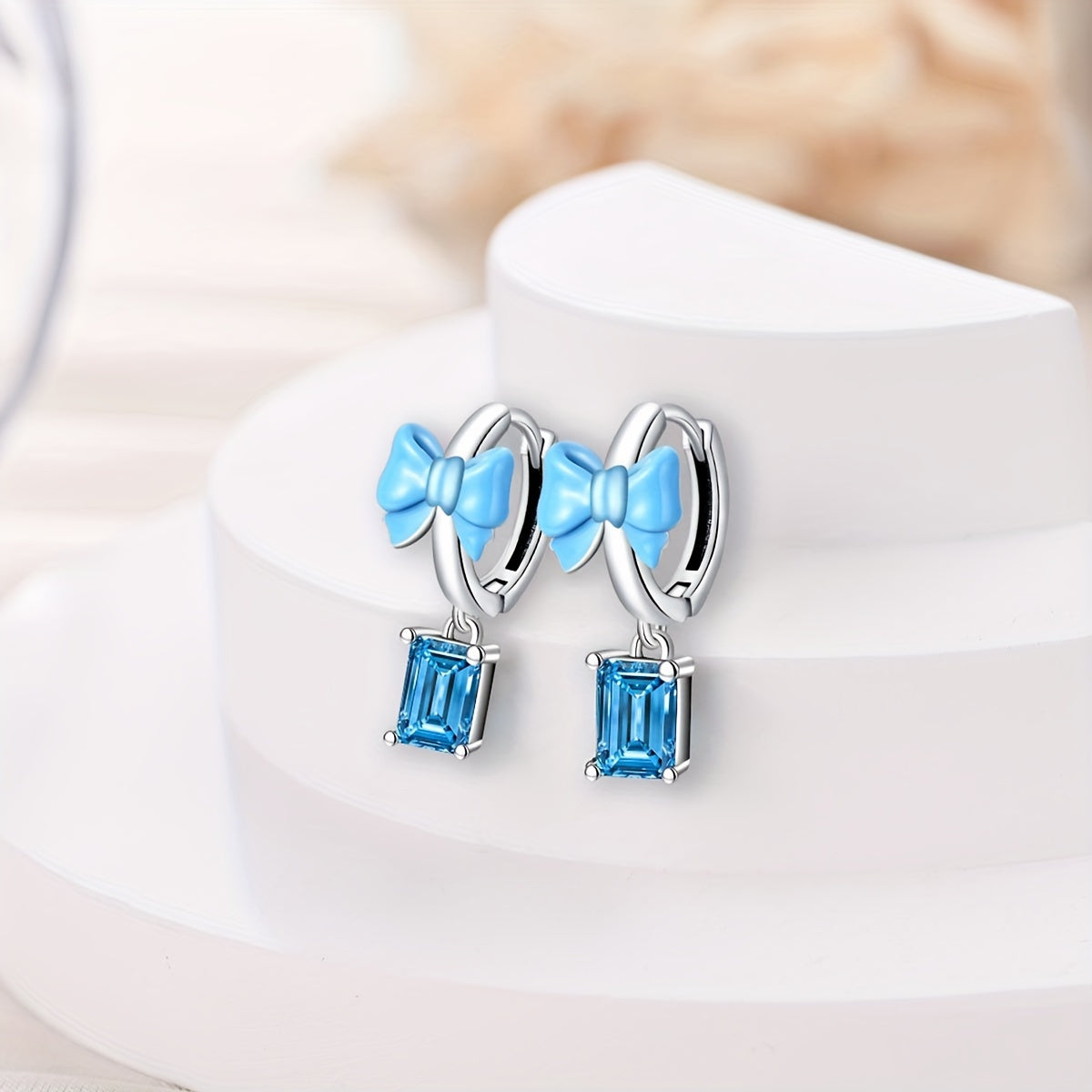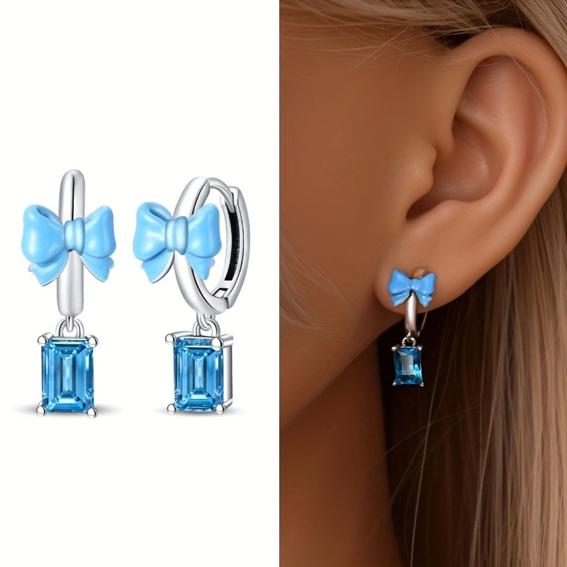 These stunning square sparkle hoop earrings feature a chic bow ribbon design crafted from 925 sterling silver with enamel details. A perfect jewelry gift for women and girls.