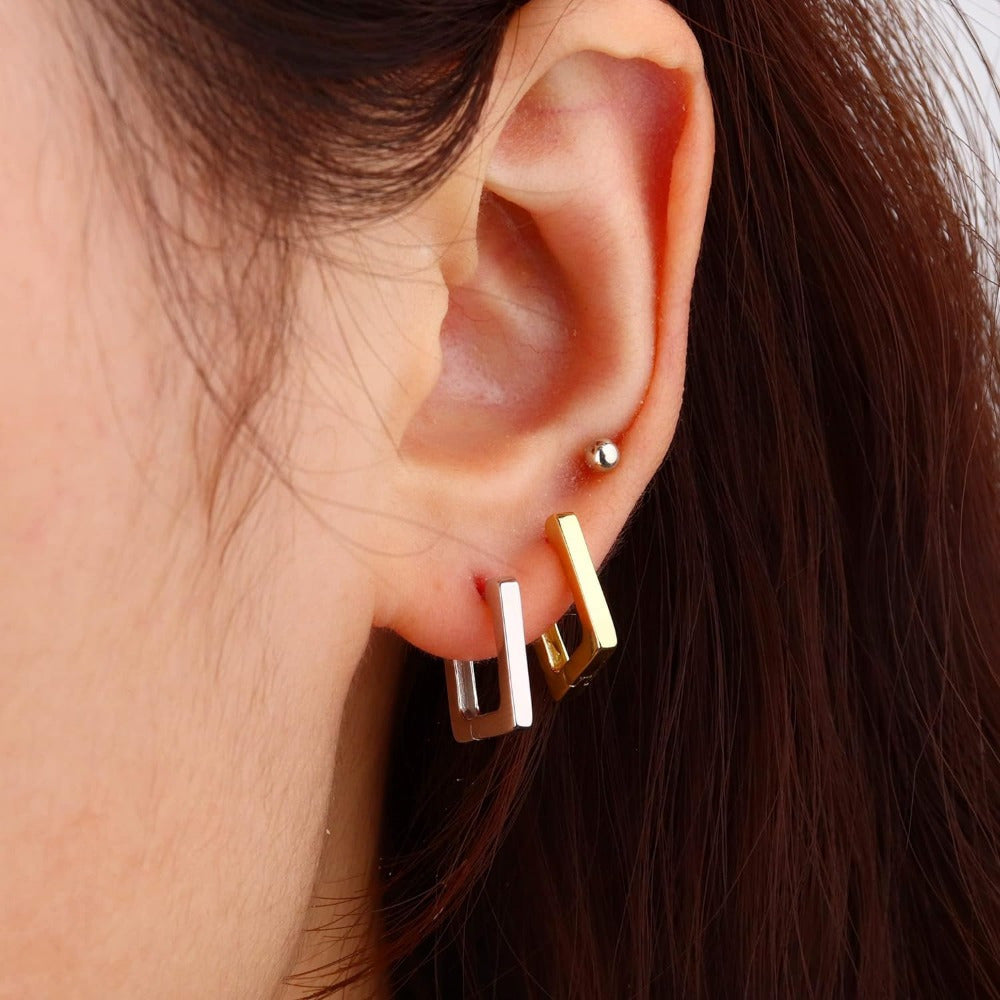 These stylish hoop earrings are made of 925 sterling silver and feature various geometric shapes. They are hypoallergenic and lightweight, weighing only 2.8g (0.1oz). Perfect for everyday wear or special occasions.