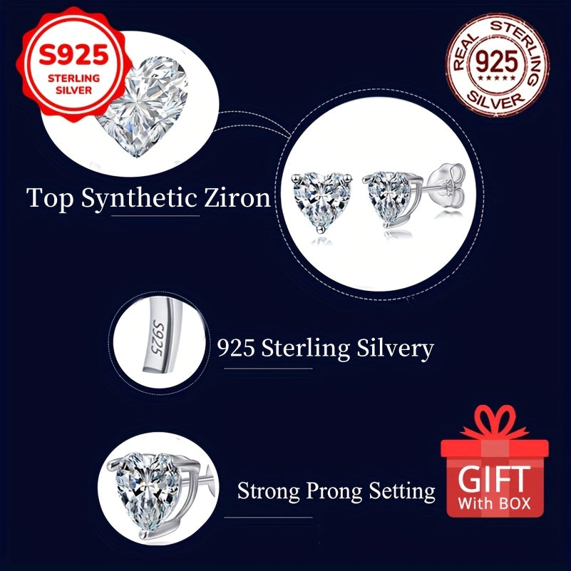 These classic 925 sterling silver earrings feature a heart shape with synthetic zirconia inlay. Ideal for those with sensitive skin, these low allergy earrings make a romantic gift for any occasion.