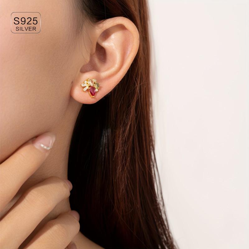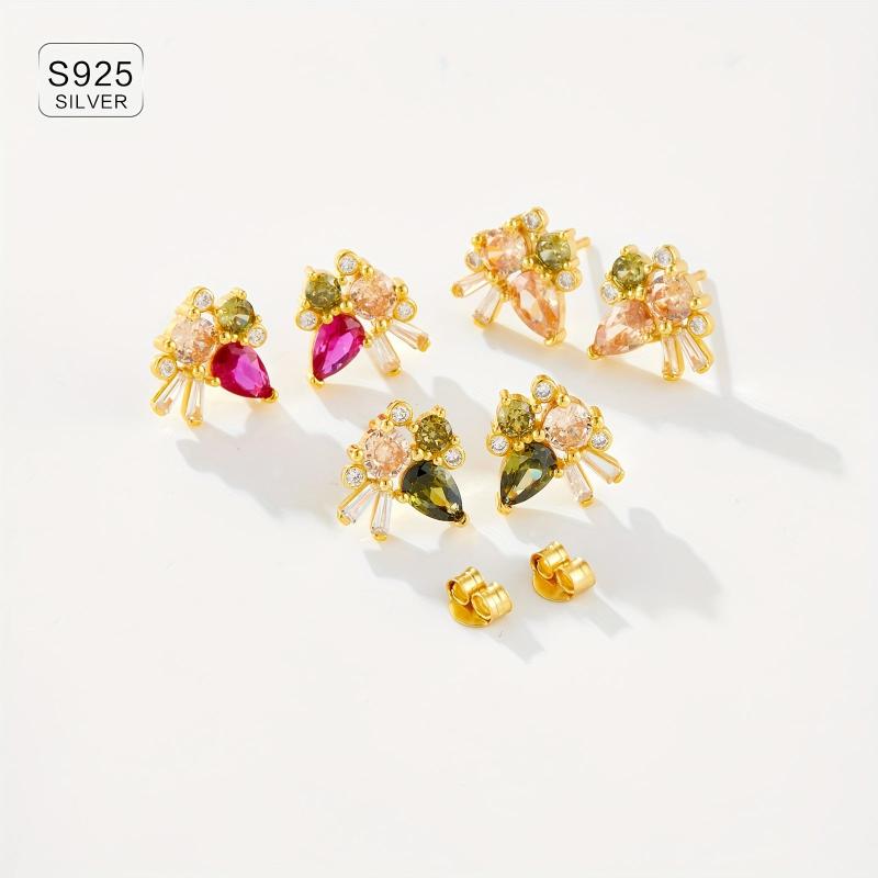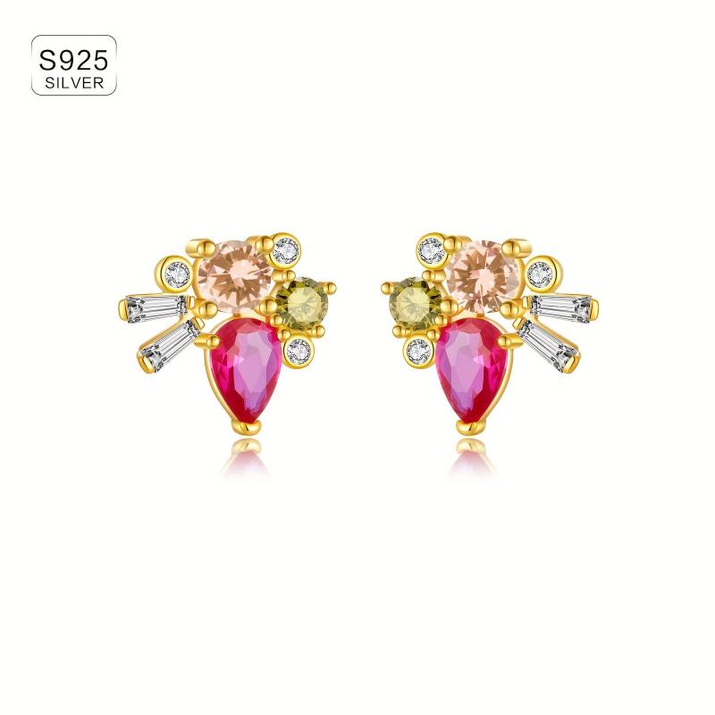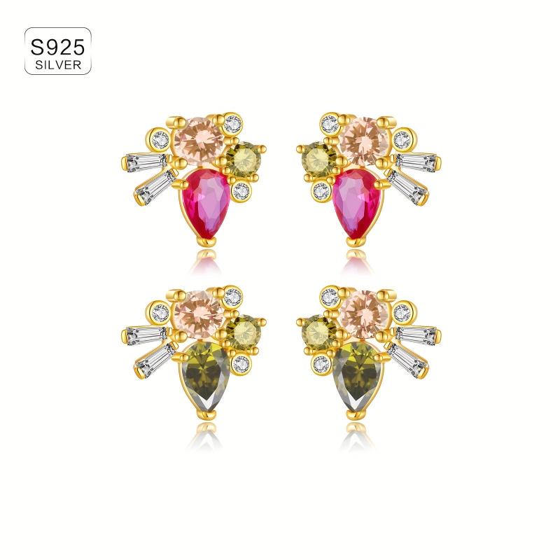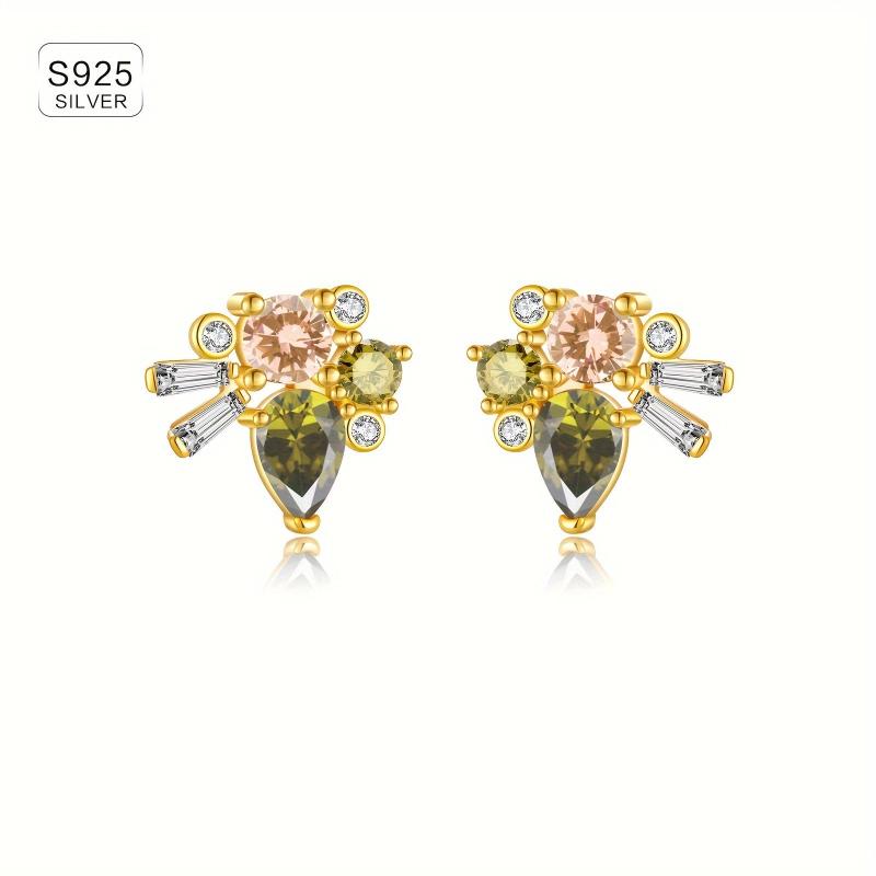 These elegant 925 sterling silver earrings feature a delicate vintage design and colourful synthetic zirconia stones. Perfect for daily wear, these high-quality jewellery pieces weigh 2.5g each.