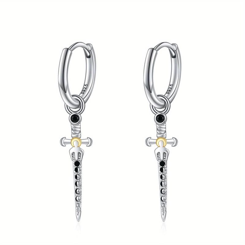 These stunning earrings are crafted from 925 sterling silver and feature a unique dagger shape with moon phase details. A perfect birthday gift for women.