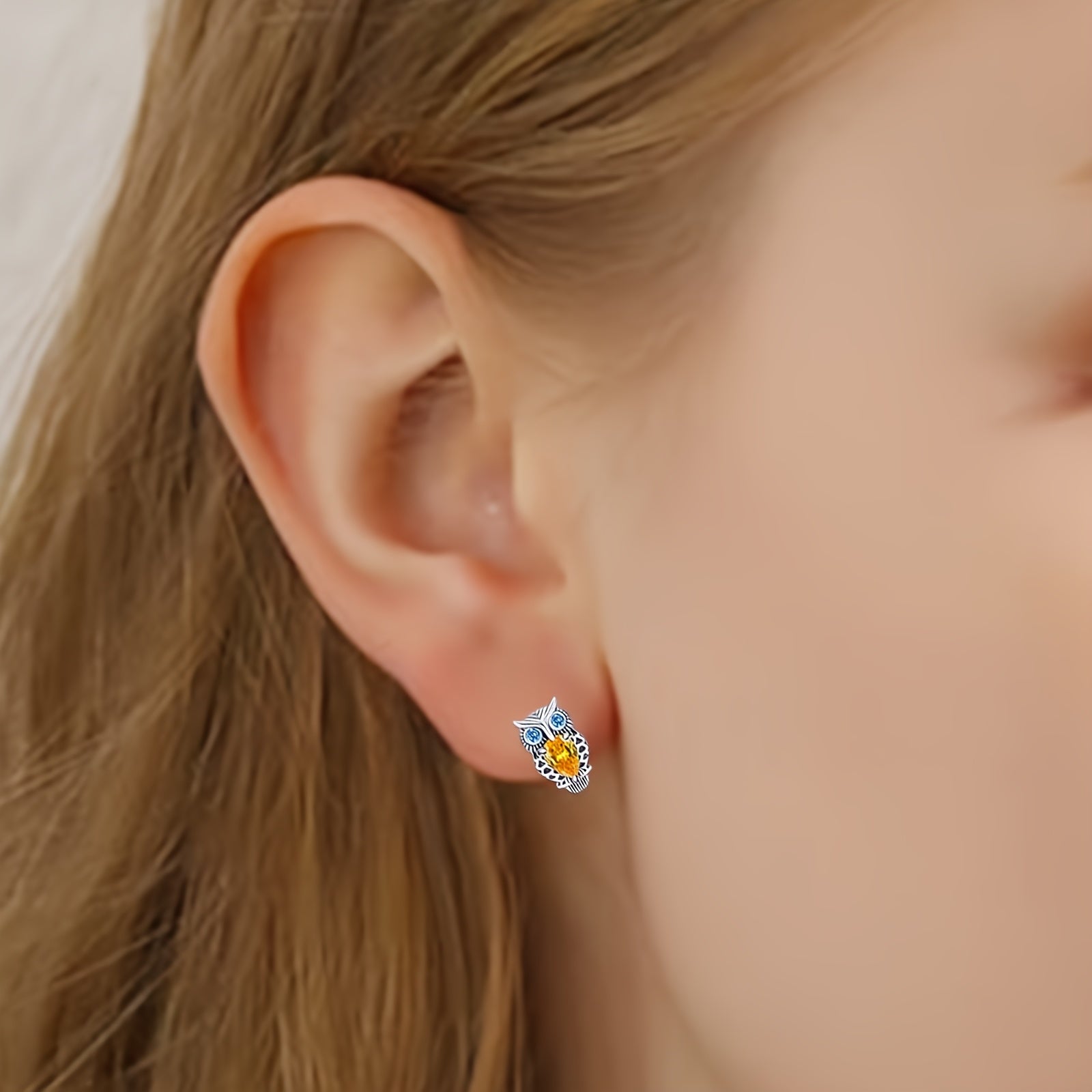 These adorable owl hoop earrings are made of 925 sterling silver and feature zirconia stones. They are perfect for girls and women who love owl jewelry.