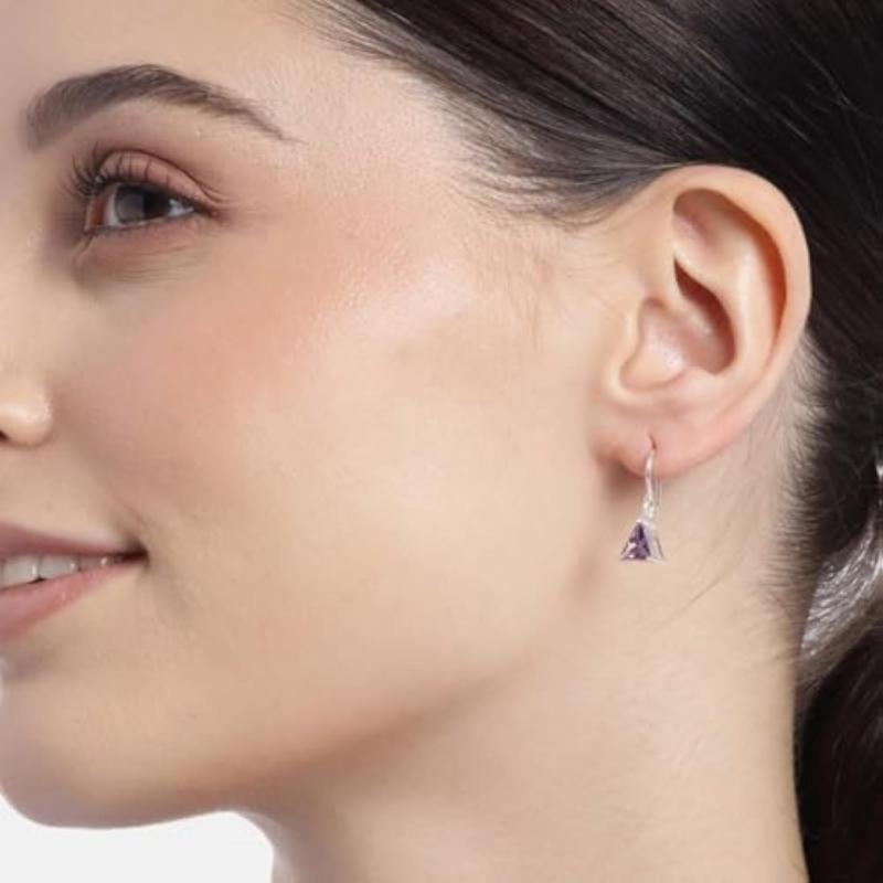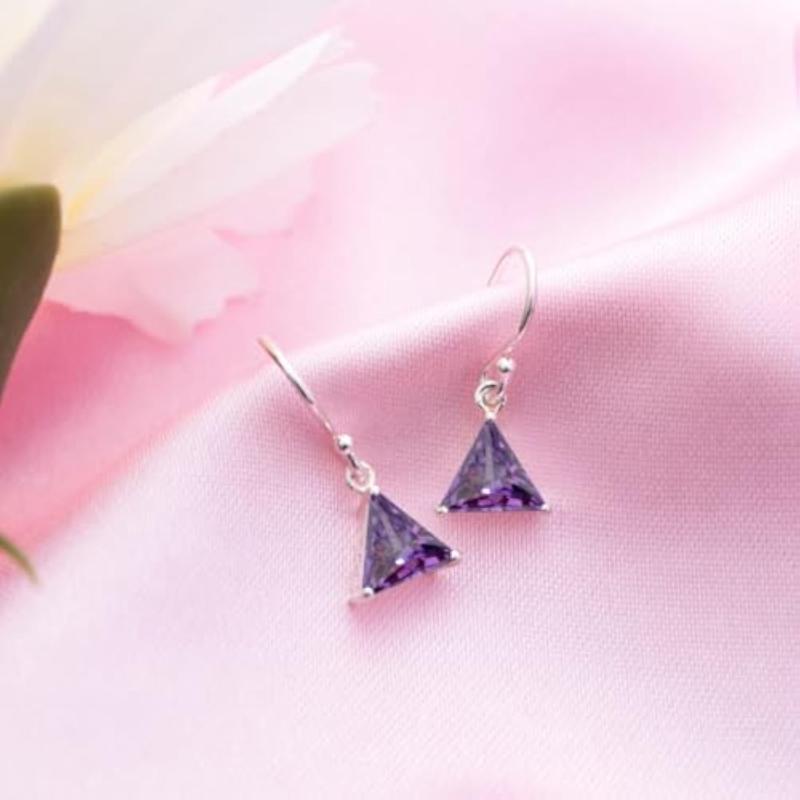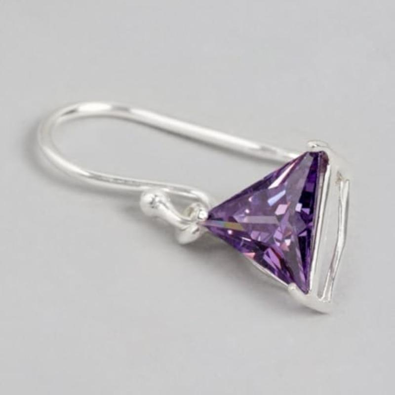 925 Sterling Silver Purple CZ Dangler Earrings