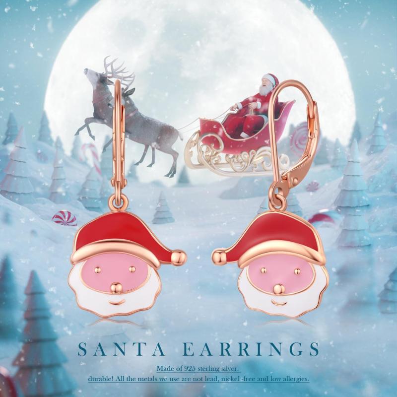 Add a festive touch with these Santa Claus rose golden pendant earrings. Perfect holiday accessory for women.