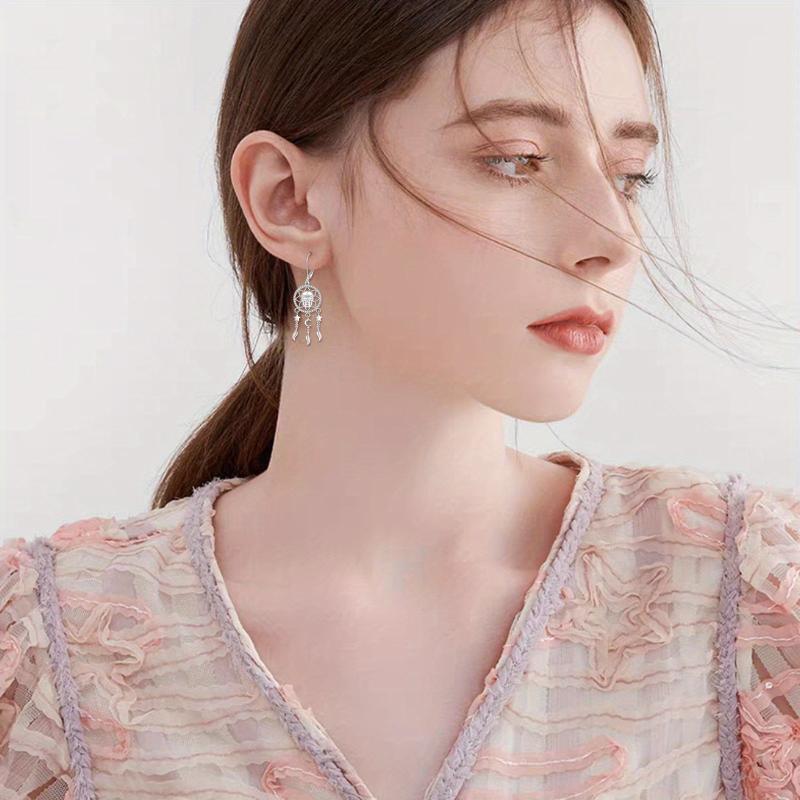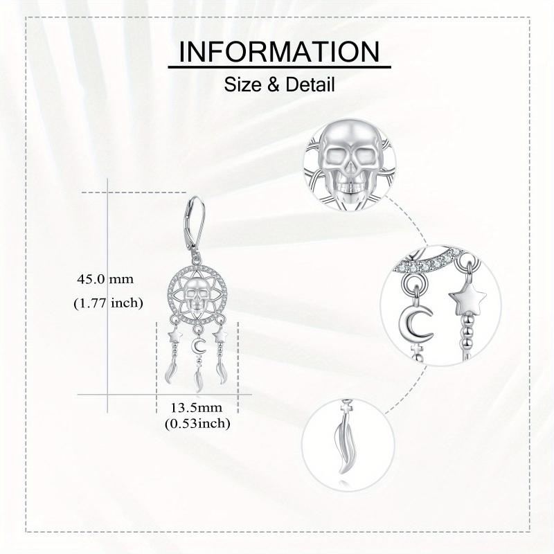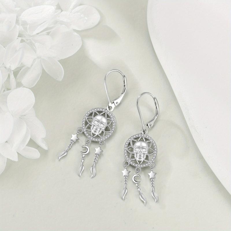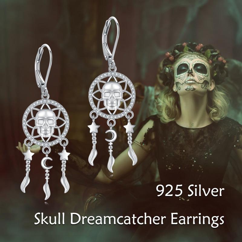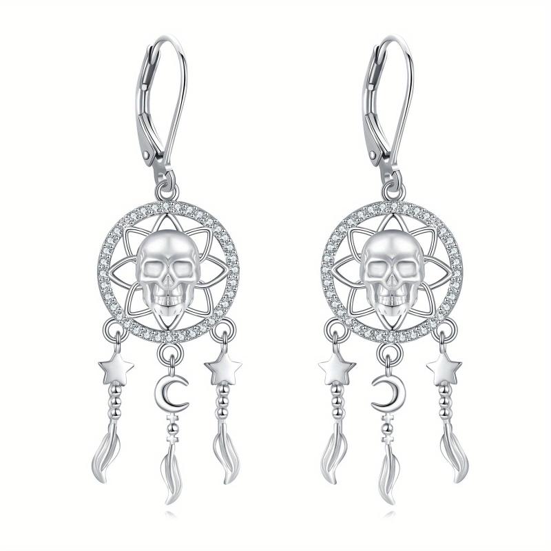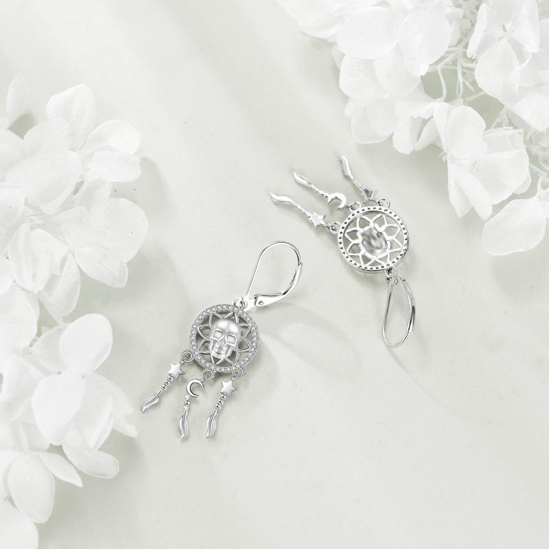 These unique earrings feature a skull dream catcher design with intricate feathers, made from high-quality 925 sterling silver. Perfect for women who love edgy, bohemian jewelry styles.