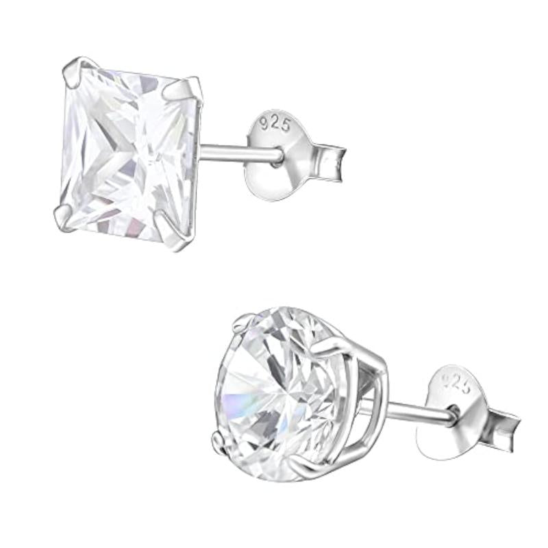 This 925 sterling silver stud earring features a mix of square and round shapes in an 8mm size. A versatile and stylish accessory for any occasion.