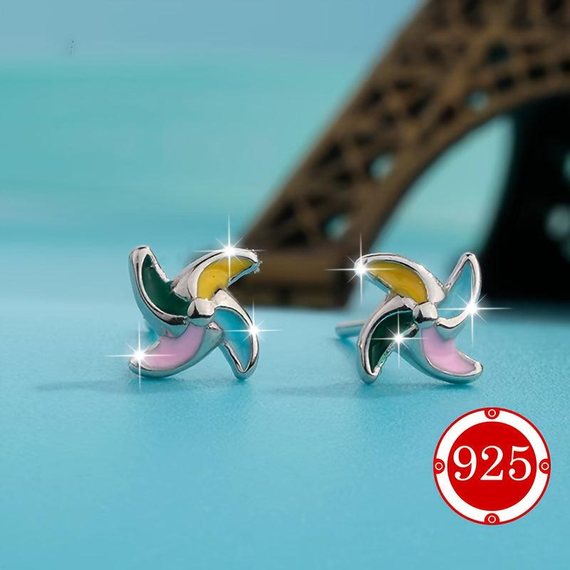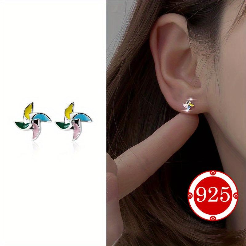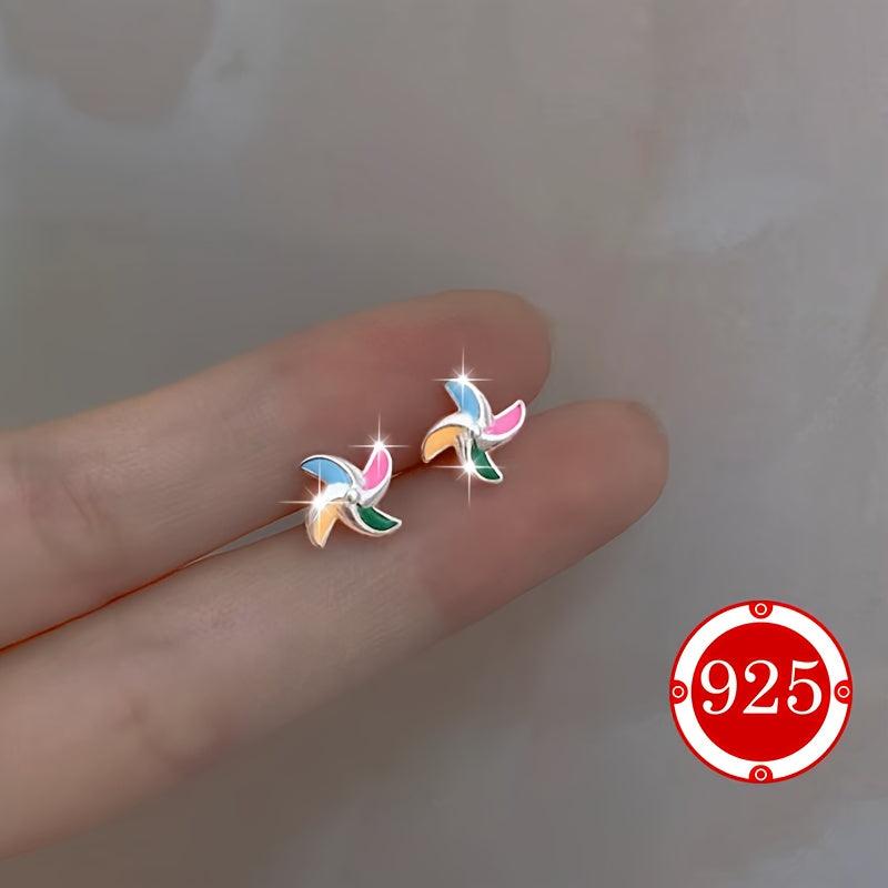 Add a touch of whimsy to your outfit with these versatile windmill earrings. Made of 925 sterling silver, these hypoallergenic earrings feature colorful studs for a playful look.
