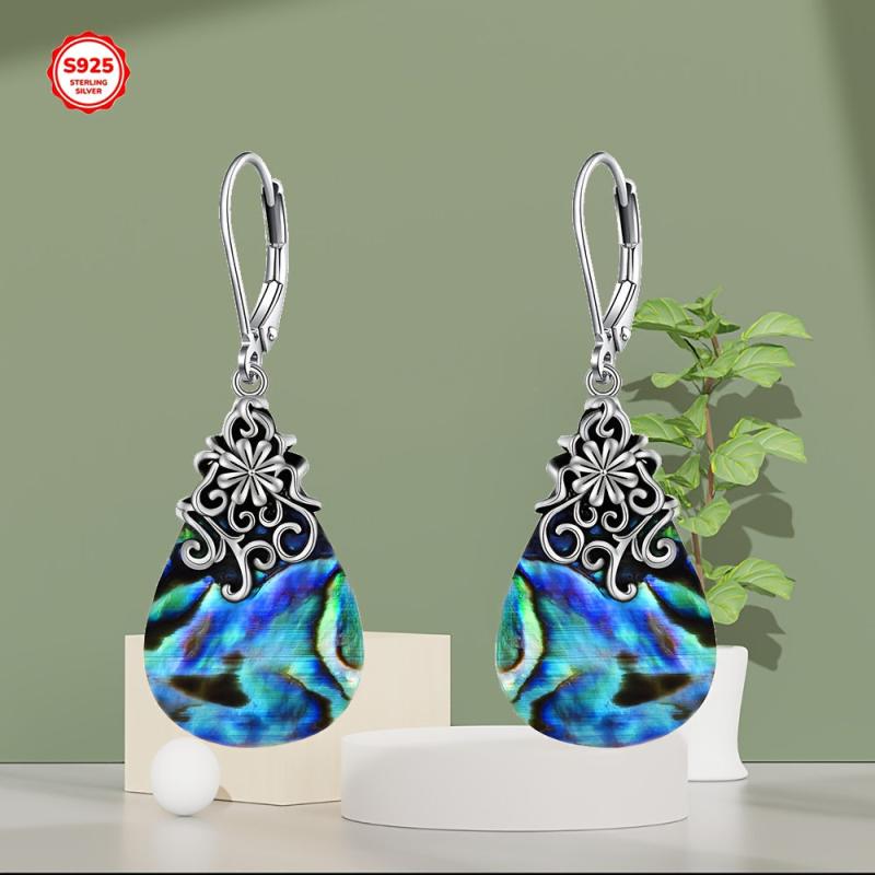 Intricately designed filigree teardrop earrings featuring abalone shell in a stunning 925 sterling silver setting. These vintage-inspired leverback earrings are a elegant addition to any jewelry collection.