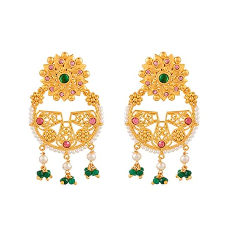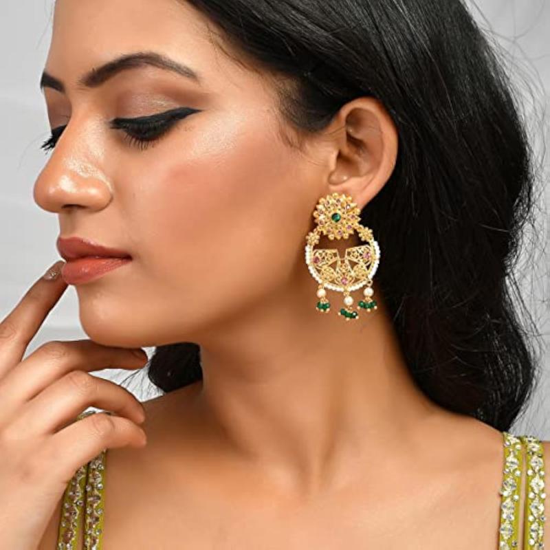 Elegant floral earrings featuring green stones and pearls for a sophisticated look.