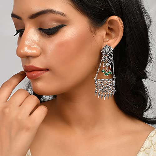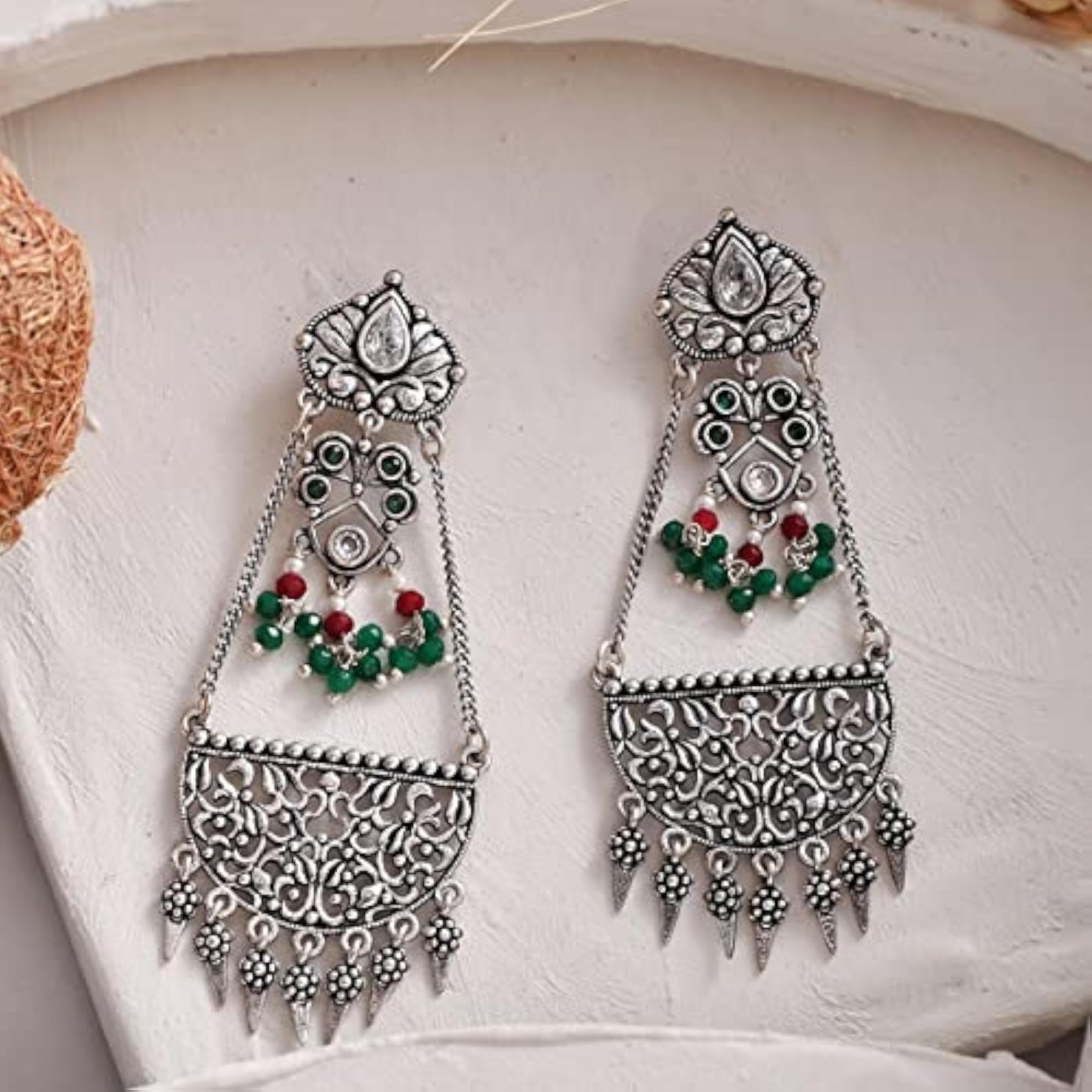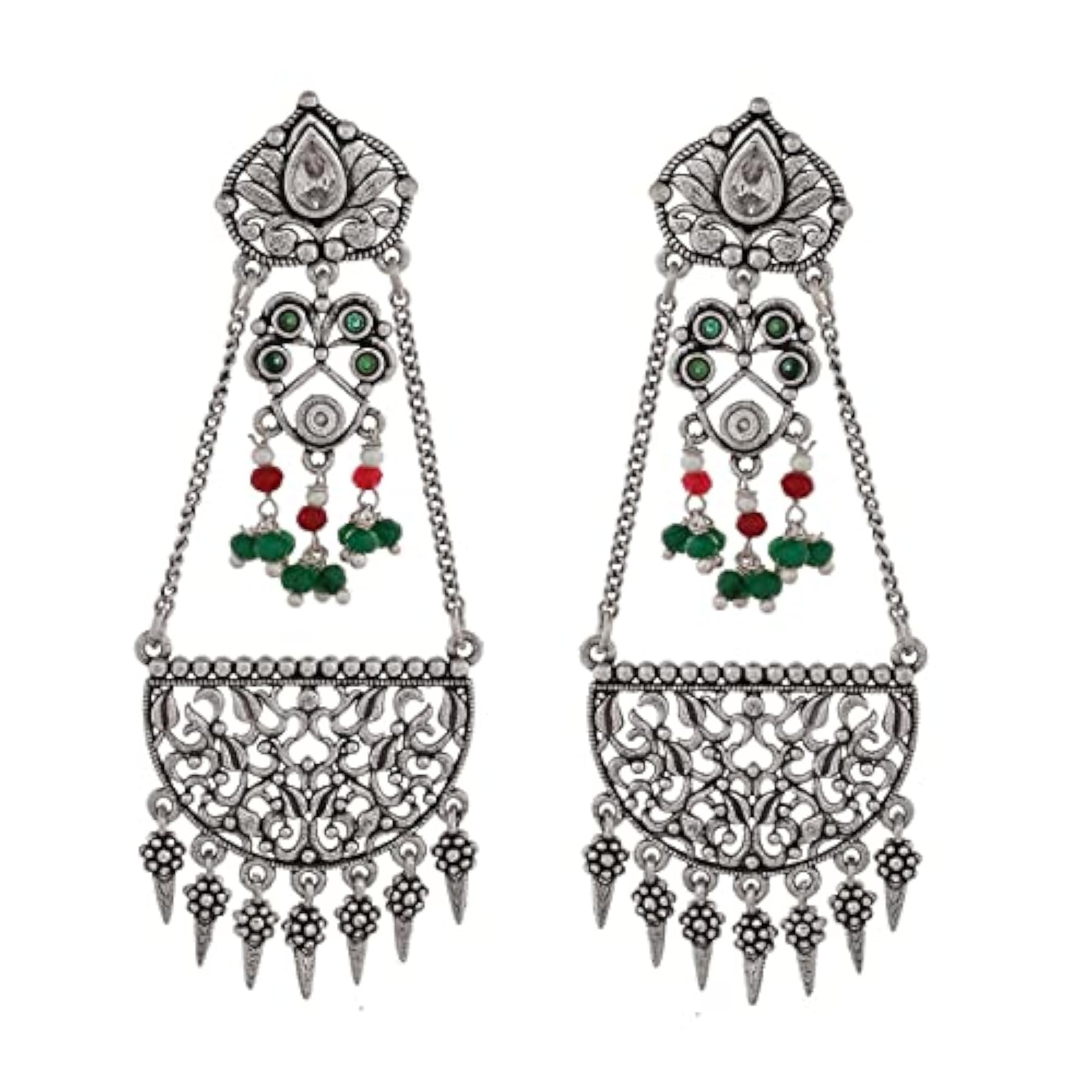 Elegant and stylish Abharan oxidised plated earrings with delicate embellishments.