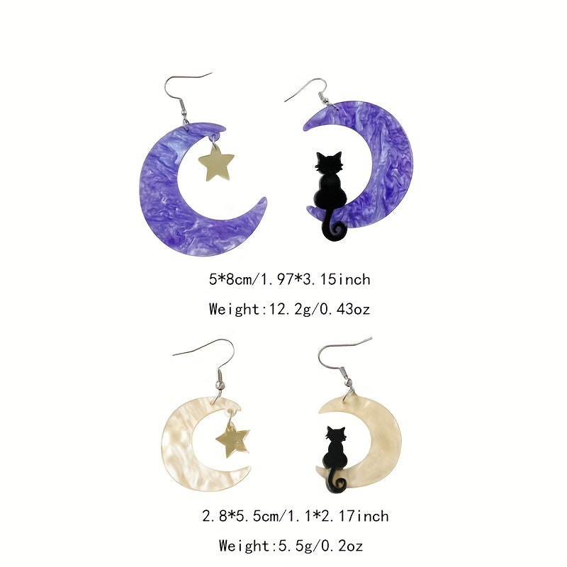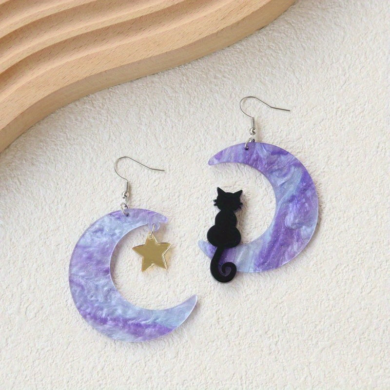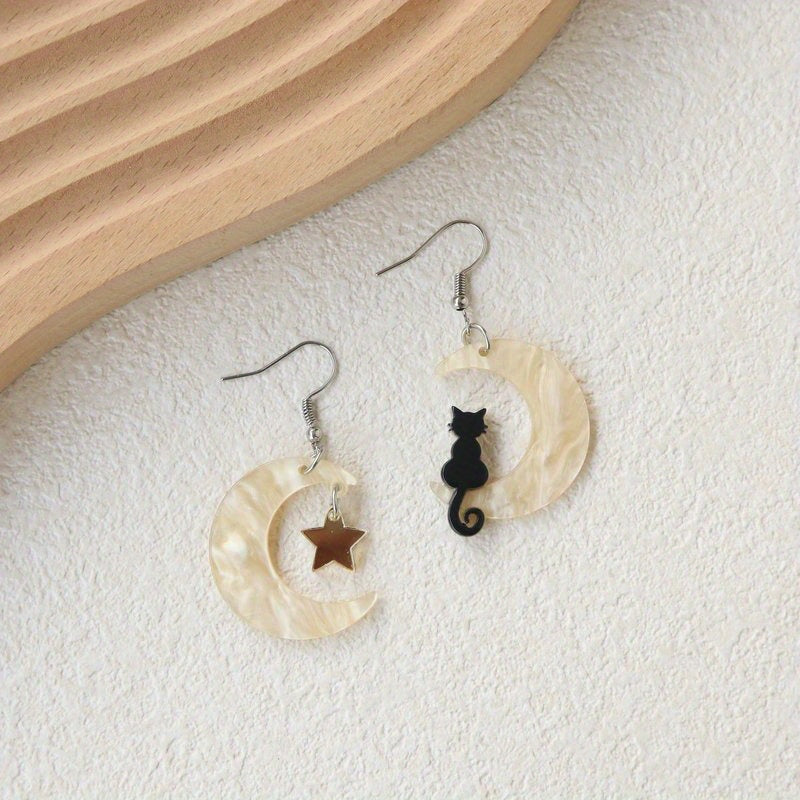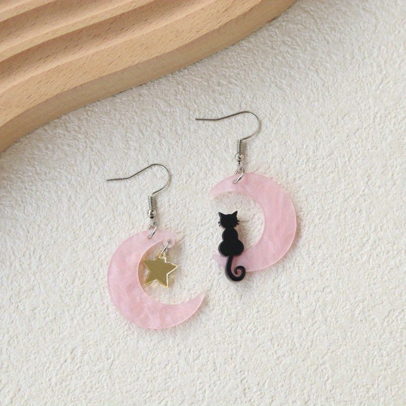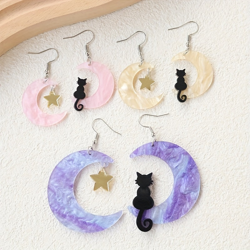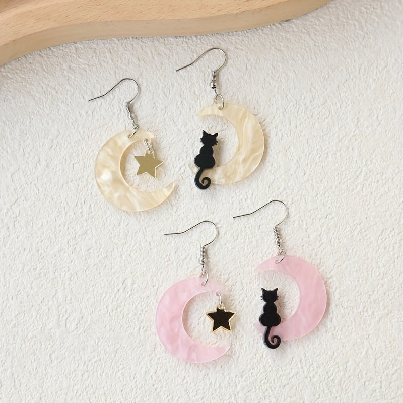 Acrylic Moon Cat Star Dangle Earrings Funny Ear Jewelry